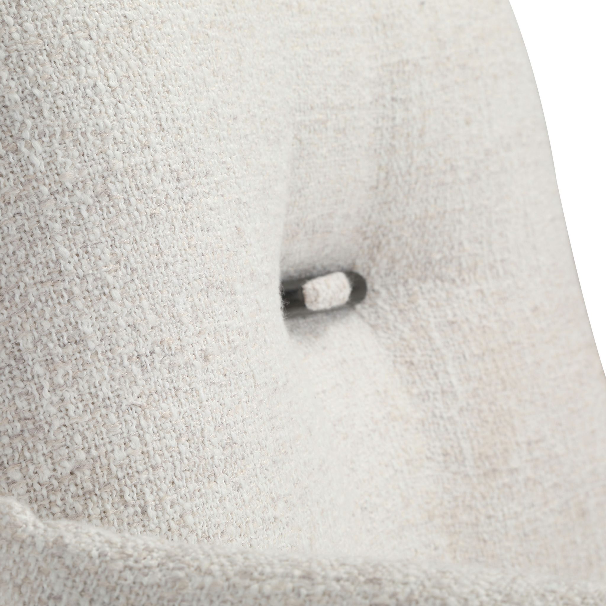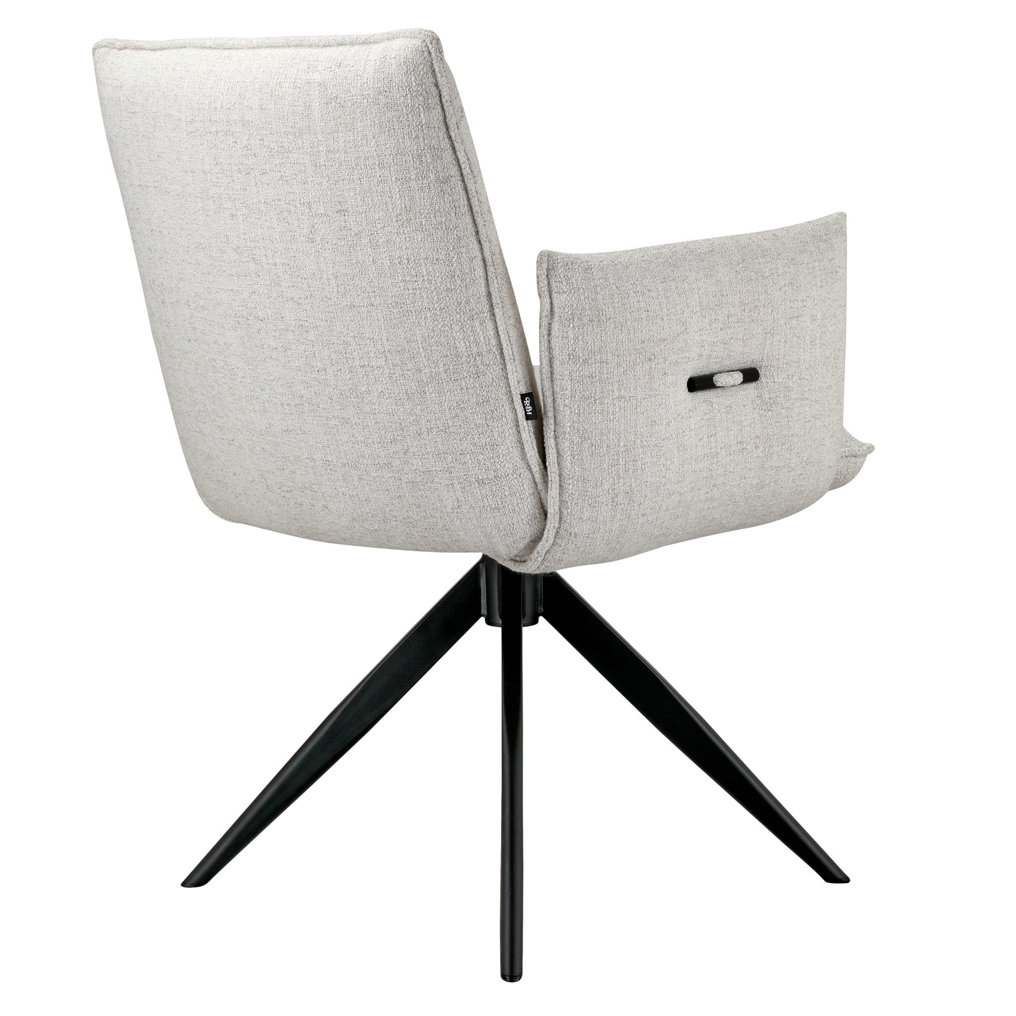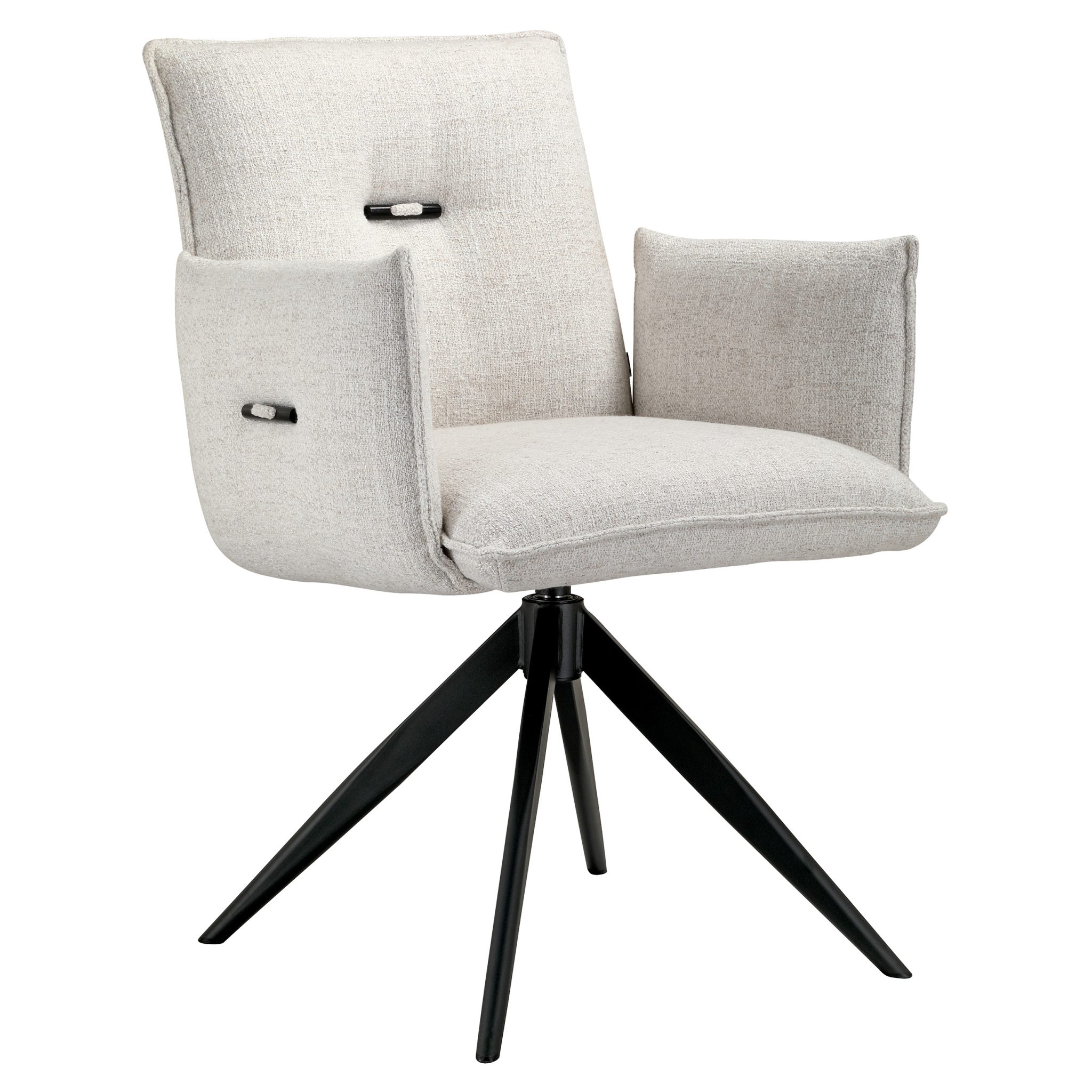 Around the table are 6 Peggy armchairs in the colour Natural. This chair has a 360-degree swivel leg with an automatic return function, making it very user-friendly. The wooden buttons on the fabric upholstery are the fine details that add finesse to the Peggy armchair. The black powder-coated metal base gives the armchair a powerful look.
