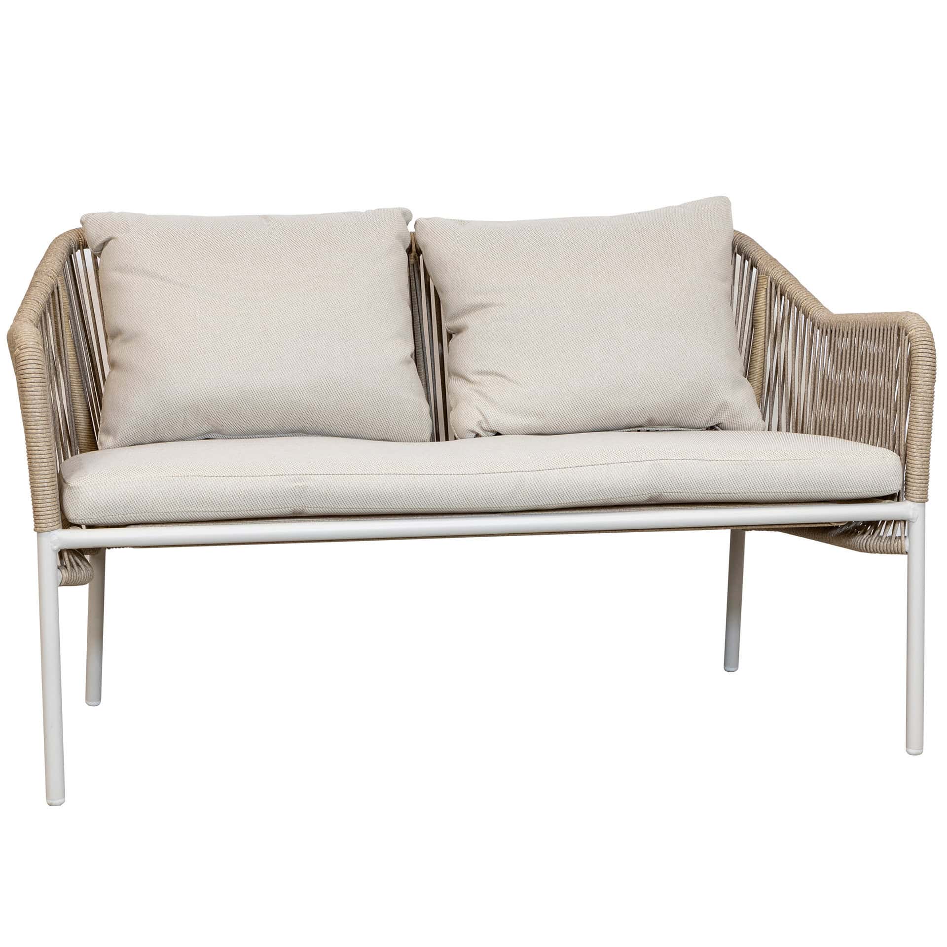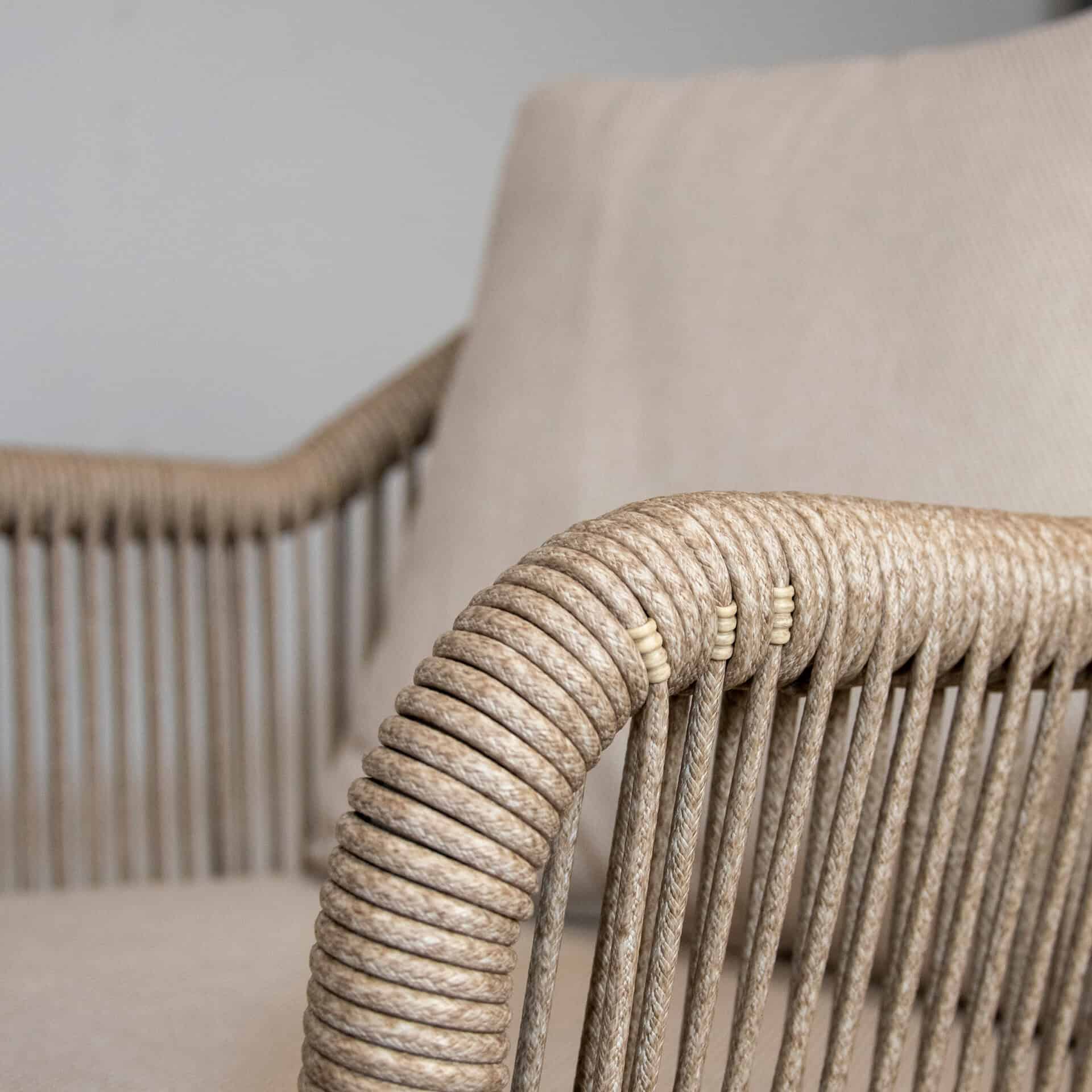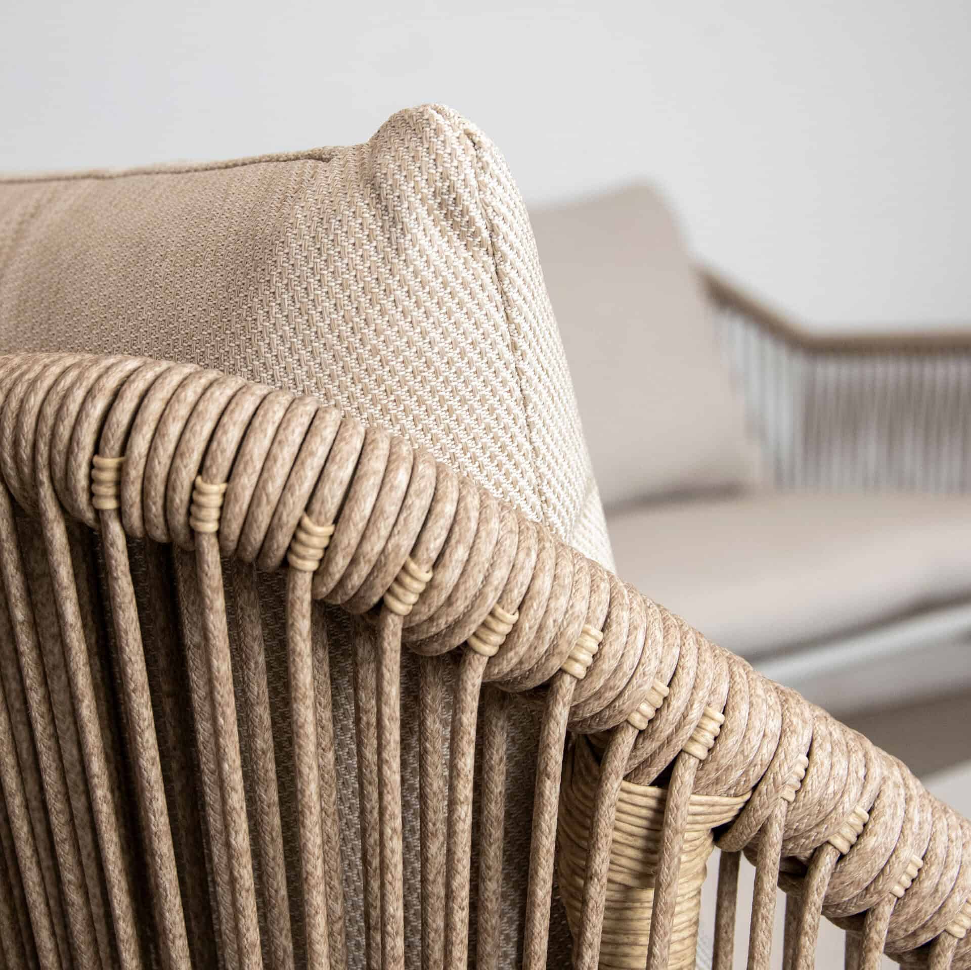 Let guests enjoy your terrace in comfort with the Baleric lounge set – Beige/Sand. The playful lines and different materials create a unique, contemporary look. This beautiful 4-piece lounge set consists of: 2 lounge chairs, 1 lounge sofa (2-seater) and 1 coffee table.