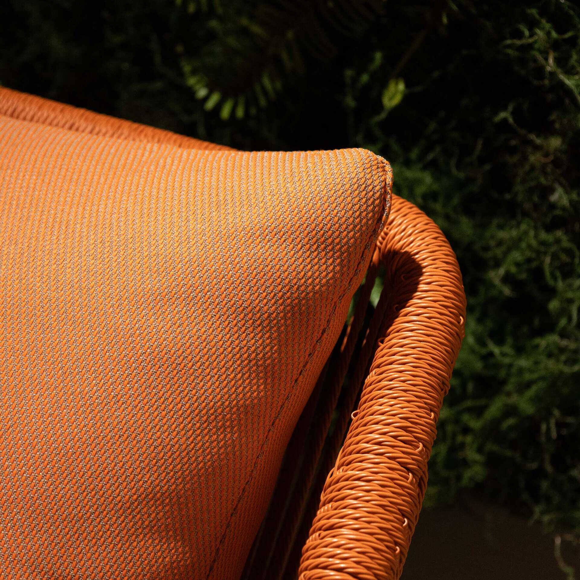 Let guests enjoy your terrace in comfort with the Baleric lounge set – Orange. The playful lines and different materials create a unique, contemporary look. This beautiful 4-piece lounge set consists of: 2 lounge chairs, 1 lounge sofa (2-seater) and 1 coffee table.