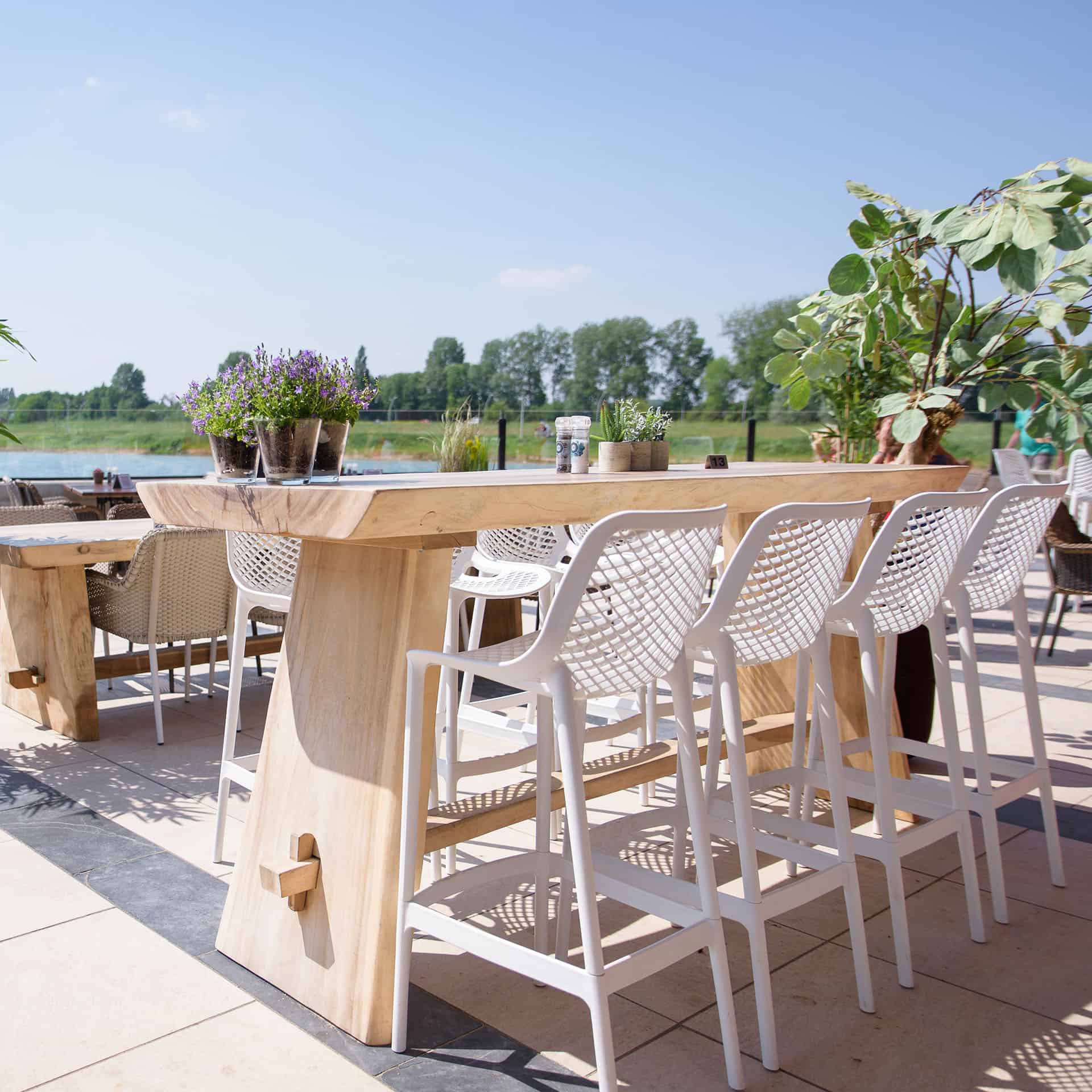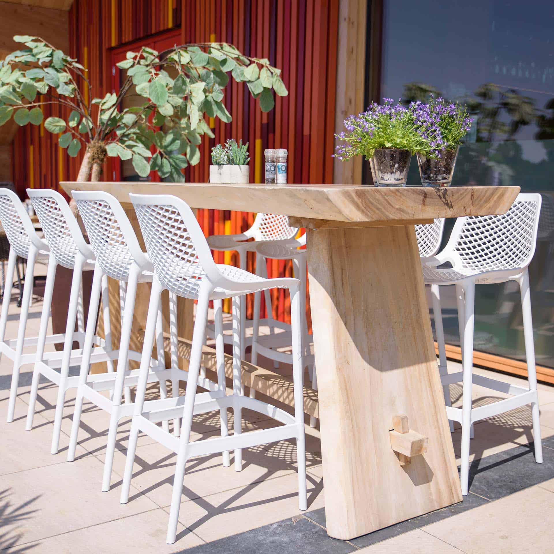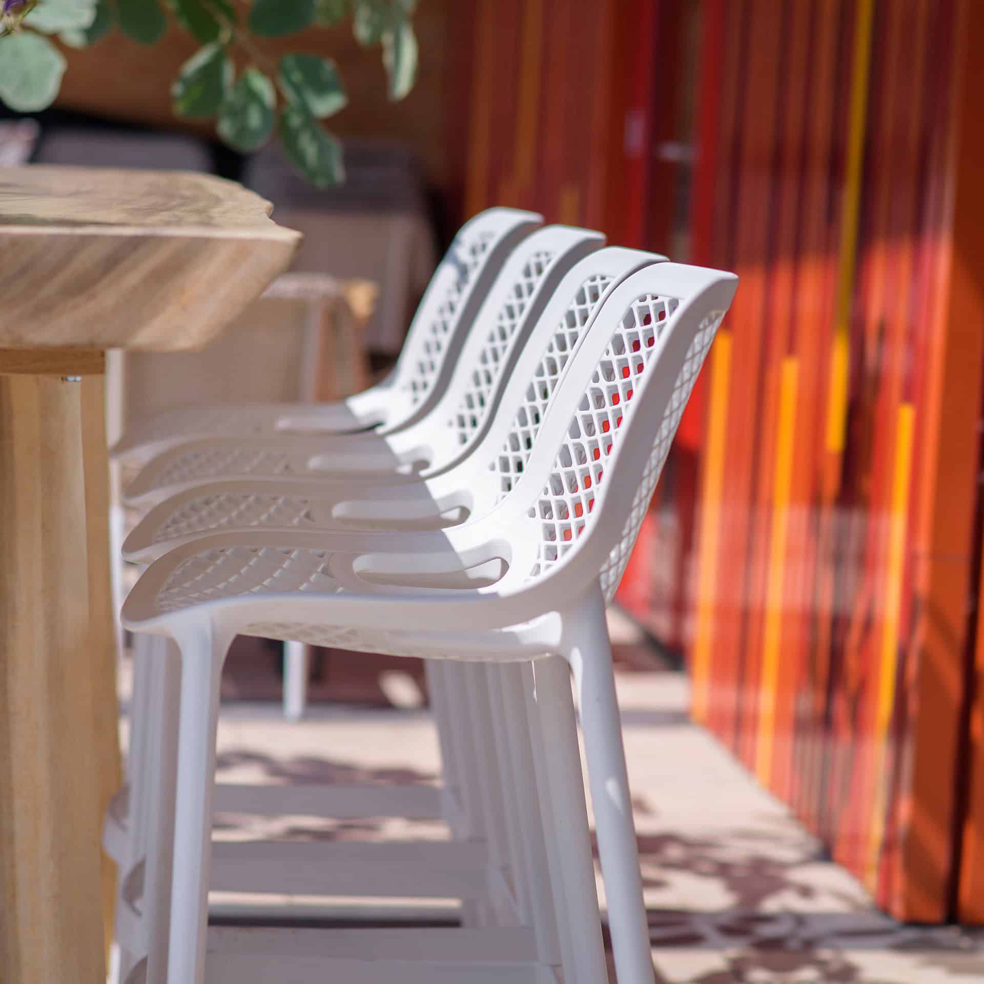 The Air Barstool is a real eye-catcher thanks to its airy design and trendy texture. The comfortable seat and white colour give the stool a luxurious and modern look that fits perfectly on any terrace.