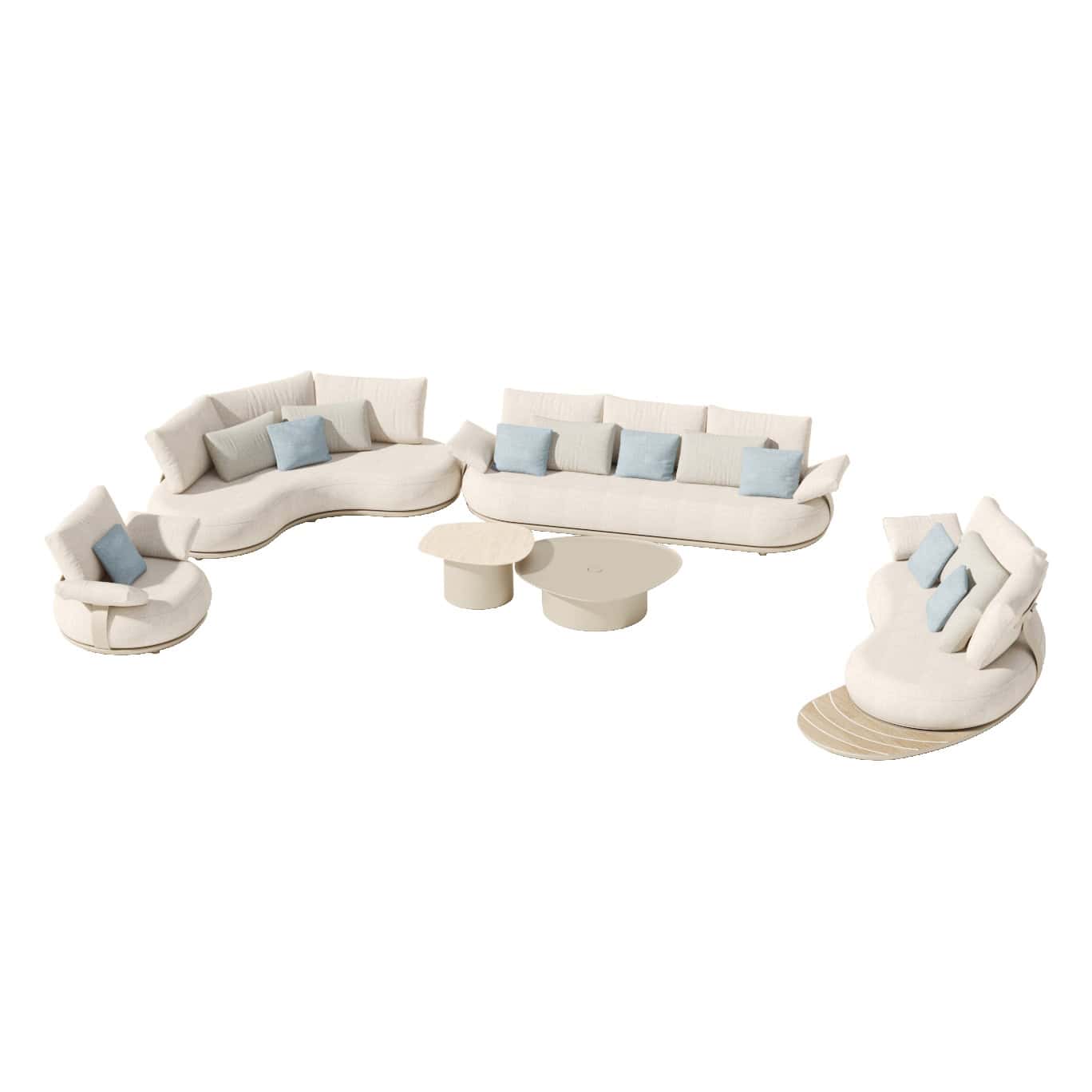The Calla Lounge Set by Higold is a luxurious set consisting of a 3-seater lounge sofa, two corner lounge sofas, a lounge armchair, and two coffee tables. Higold Excellent Outdoor is known for its use of high-quality materials and unique designs. The Calla Lounge Set was designed by Claudio Bellini and is inspired by the soothing beauty of nature. This elegant lounge set is perfect for relaxing. The elements can be used both as a complete set or individually in any outdoor space. A real eye-catcher!