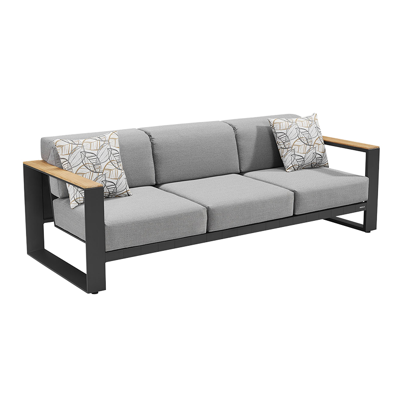 This lounge set consists of a 3-seater lounge sofa, two lounge chairs and a stylish coffee table. These stylish outdoor furniture pieces have an anthracite powder-coated aluminum frame. This choice of materials makes the frame lightweight, but very sturdy. The powder coating also ensures that the frame is scratch-resistant and requires little maintenance. Both the table top and the details on the armrests are made of teak. Thick gray acrylic cushions have been placed in the lounge sofa and chairs. Acrylic is a strong, dirt-repellent and UV-resistant material. This makes the cushions durable and feels nice and soft! The Cambusa Lounge set is therefore suitable for professional outdoor use.