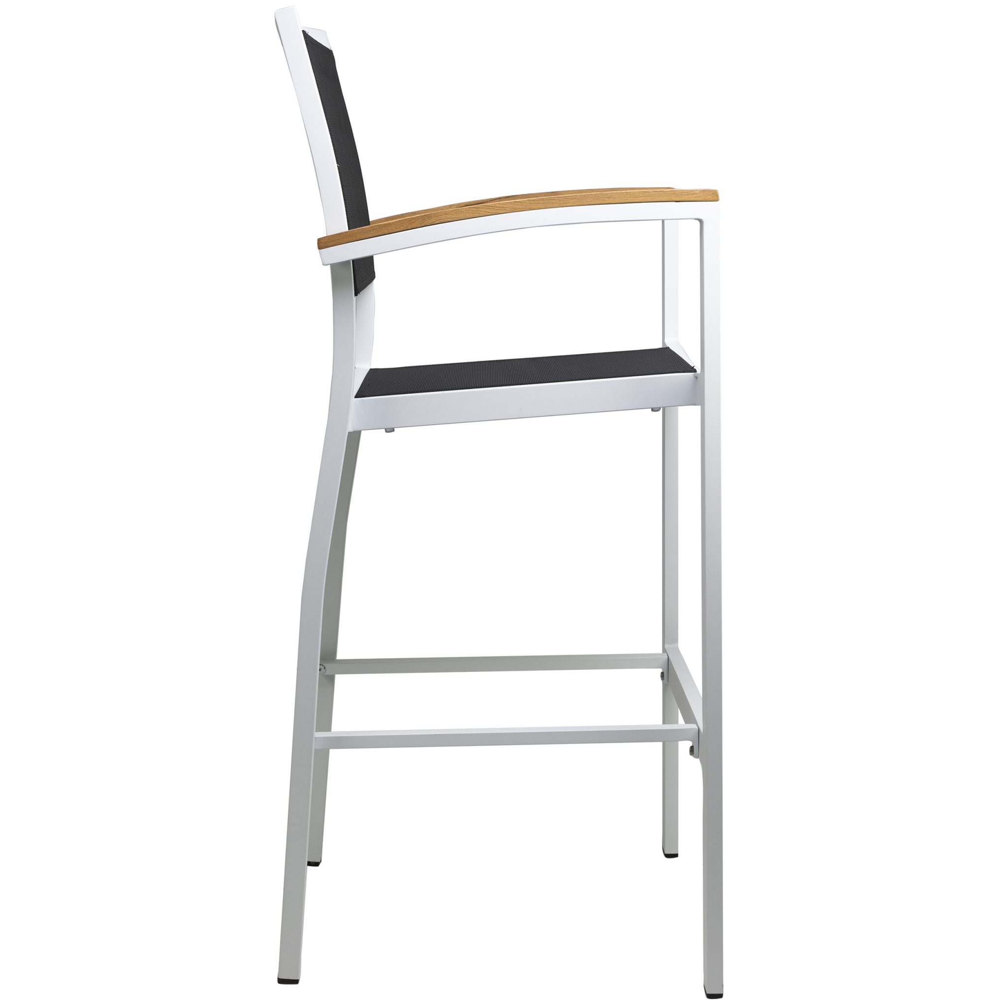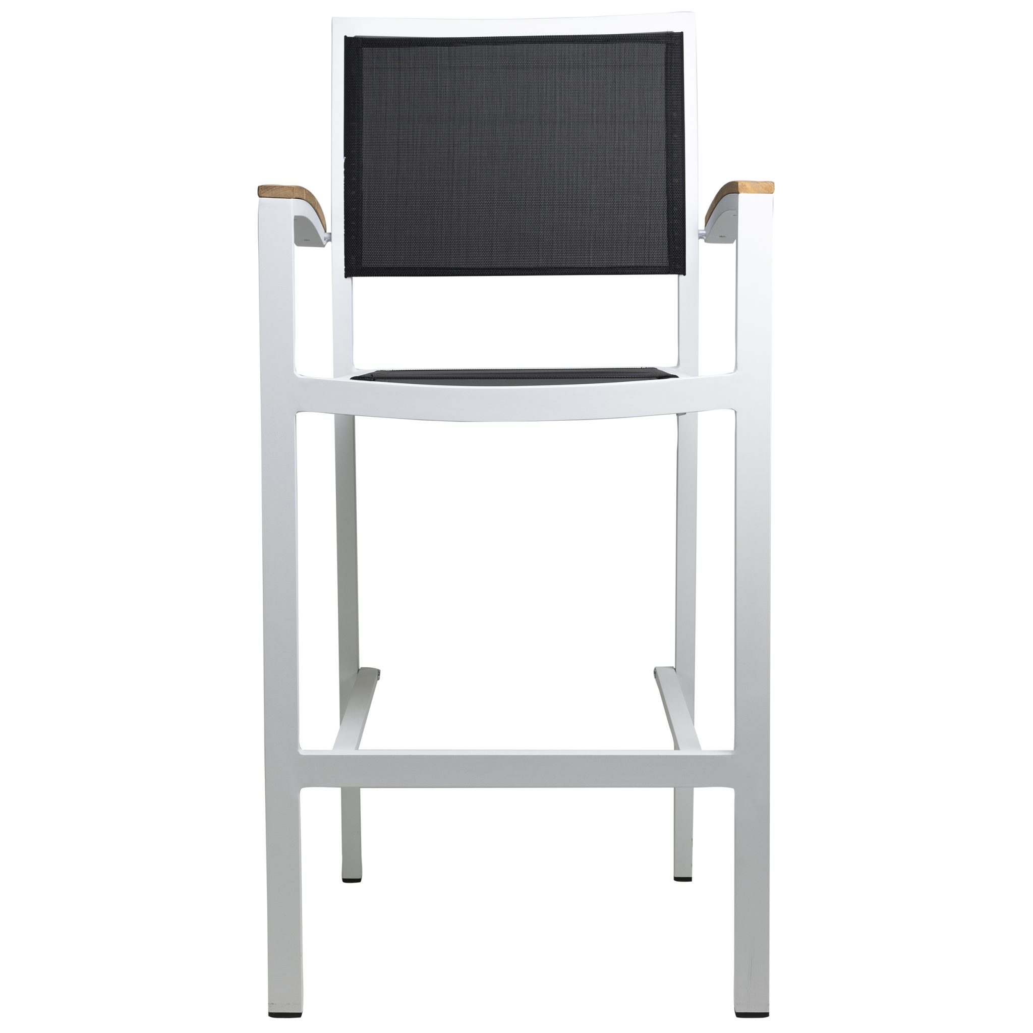 The Cenon barstool is known for its comfort and appearance. The black textilene and armrests ensure a comfortable seat, while the teak armrests add a warm, stylish touch. The powder-coated aluminium frame is scratch-resistant and easy to maintain. The UV-resistant textilene makes the stool weatherproof and ideal for heavy-duty outdoor use.