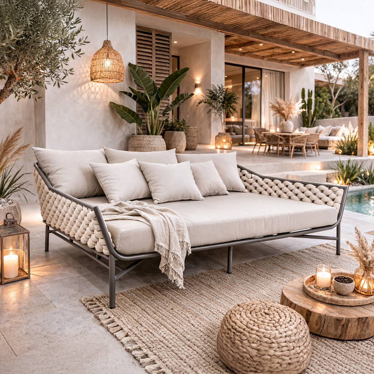 The Rio Daybed has a chic design and offers a high level of comfort thanks to its thick, soft cushions. This piece of outdoor furniture has a powder-coated aluminium frame. This material makes the frame lightweight yet extremely stable. The powder coating also ensures that the frame is scratch-resistant and low-maintenance.