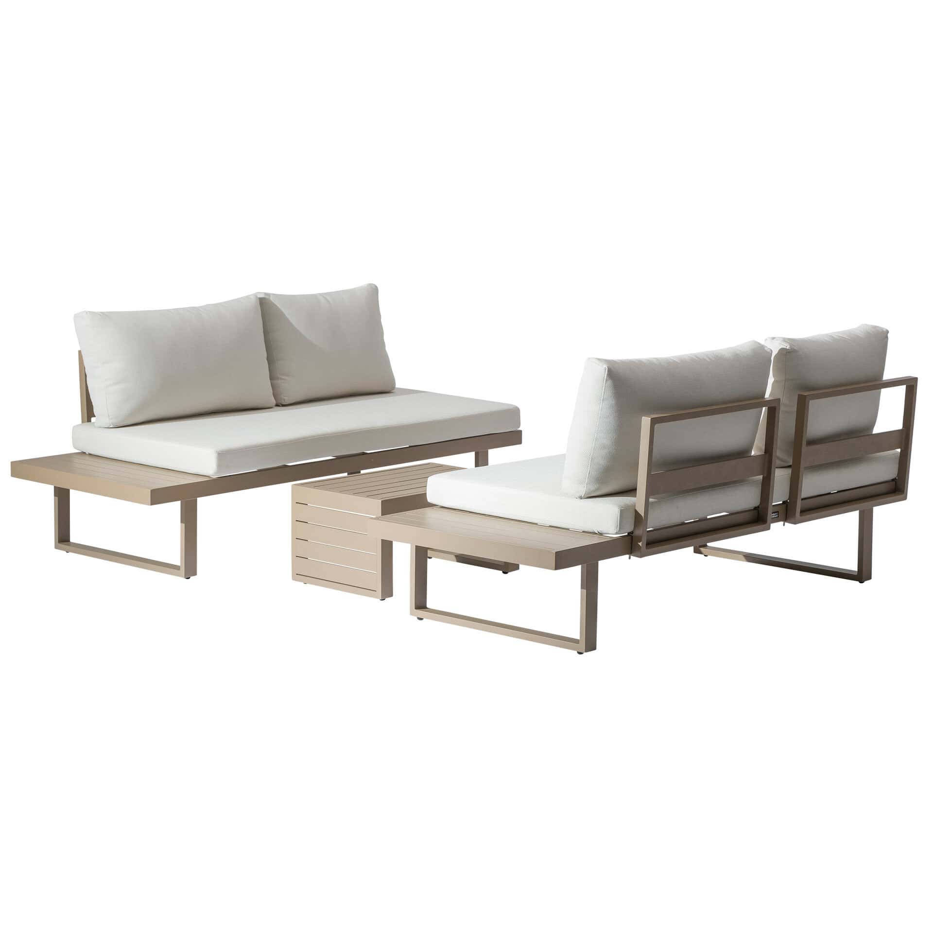 Maintaining this lounge set is very simple. A basic cleaning with water and mild soap keeps the frame in top condition. The maintenance is easy and efficient. The polyester cushions dry quickly and retain their shape, even after years of intensive use. The set can remain outdoors all year round without any loss of quality, eliminating storage and transport costs.