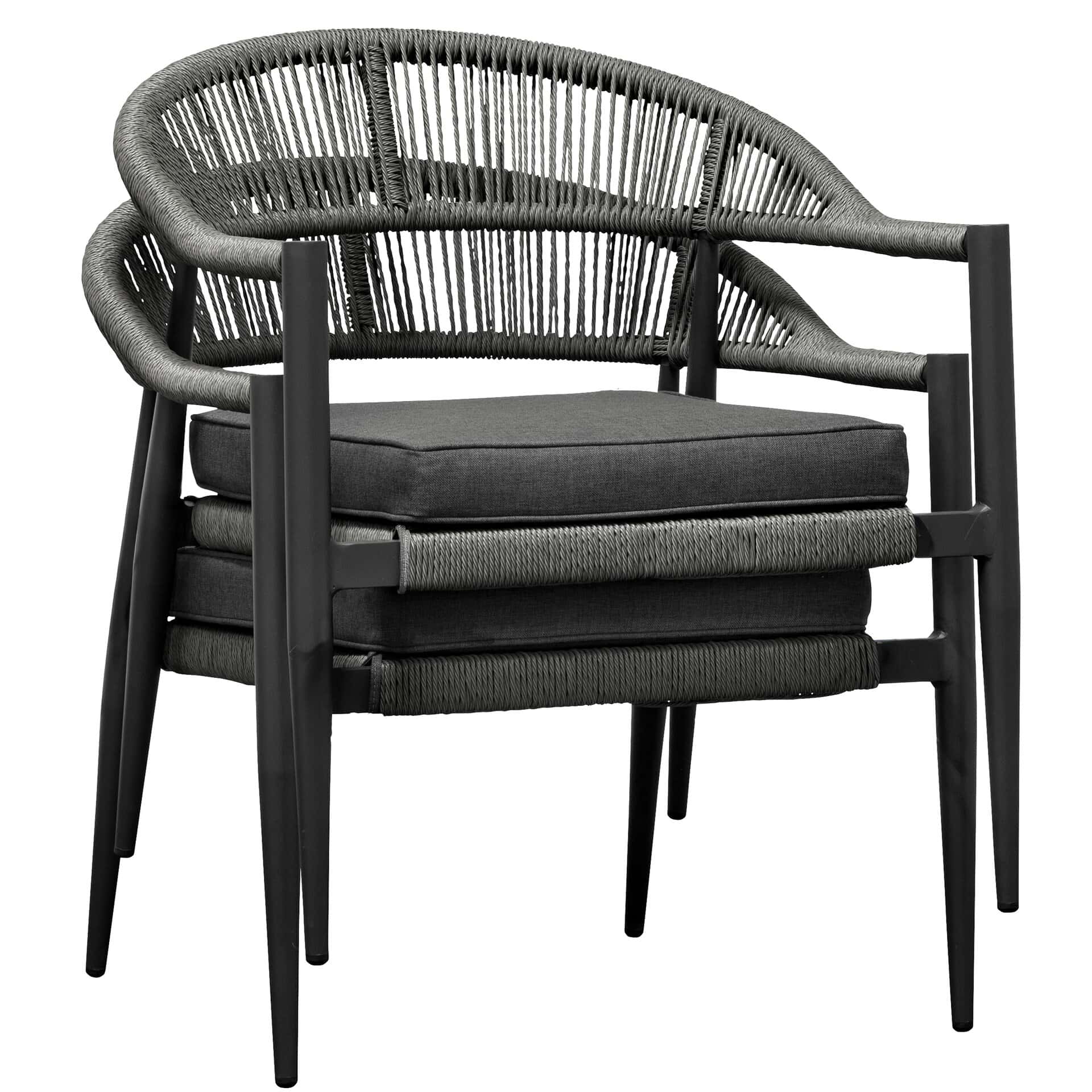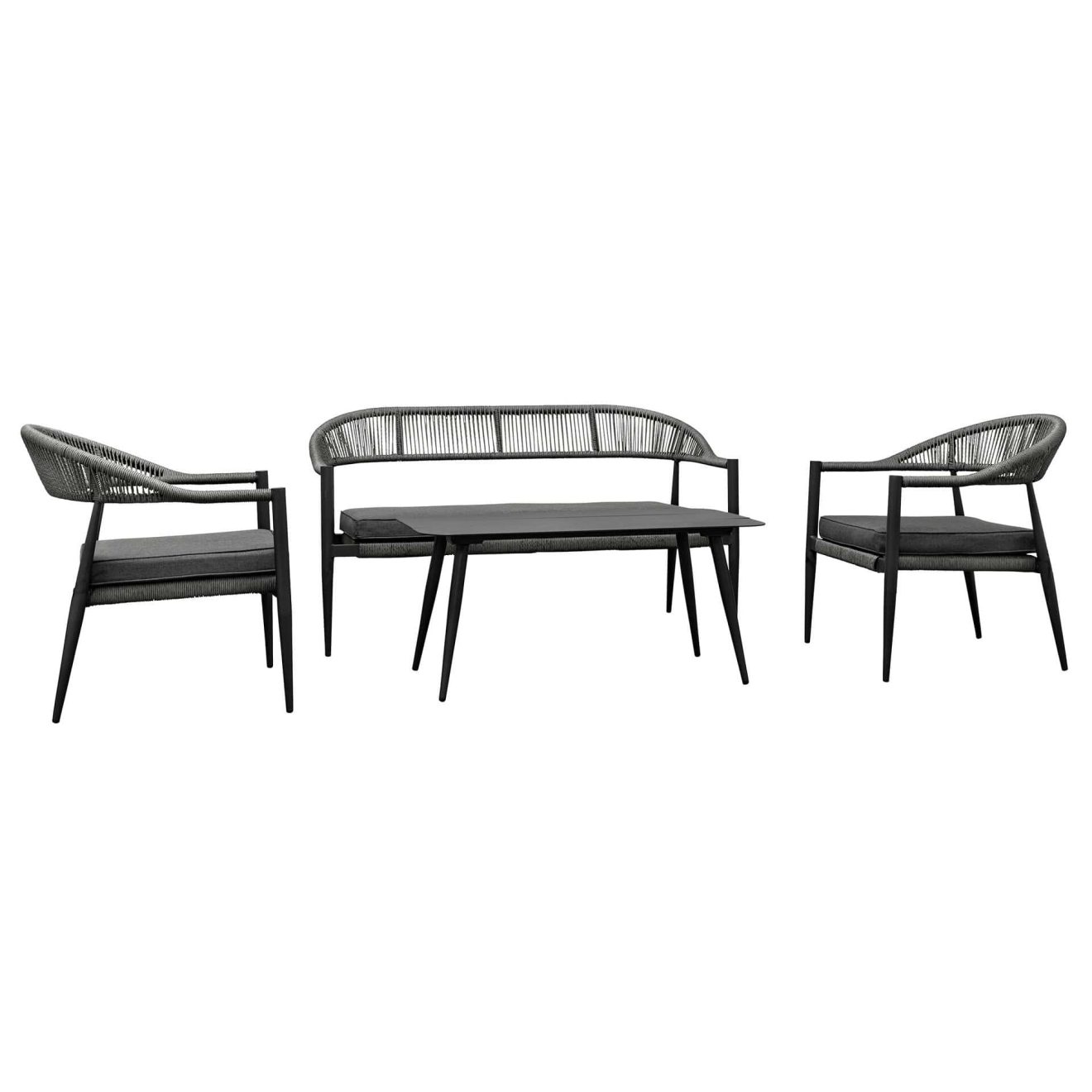 The Jonah Lounge Set requires very little maintenance. The rope weave can be easily rinsed or wiped with a damp cloth. The powder-coated frame requires no special treatment, occasional dusting is sufficient. Cushions can be machine washed if needed, ensuring fresh seating for your guests at all times.
