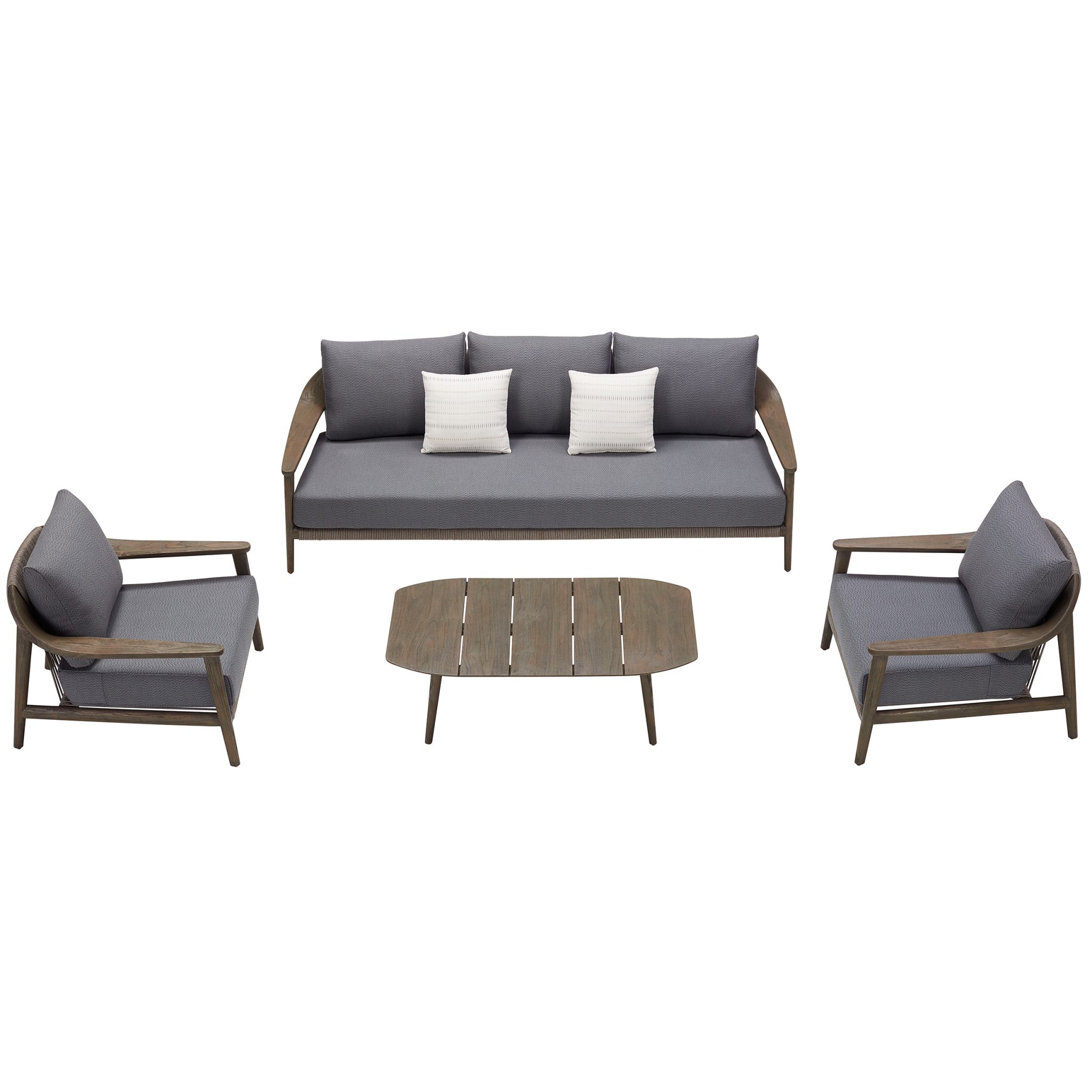 The LEO Lounge Set by Higold is a luxurious set that consists of a three-seater lounge sofa, two lounge armchairs, and a coffee table. Higold Excellent Outdoor is known for using high-quality materials and unique designs. The LEO Collection, designed by Claudio Bellini, is a clear reference to the world of the 1960s where harmony and tranquillity were essential. The teak wood and a backrest with woven rope bring nature and richness to this collection. This natural and pure lounge set is perfect for relaxing in. Convenience and comfort, stability, lightness and adaptability are the main features of this collection!