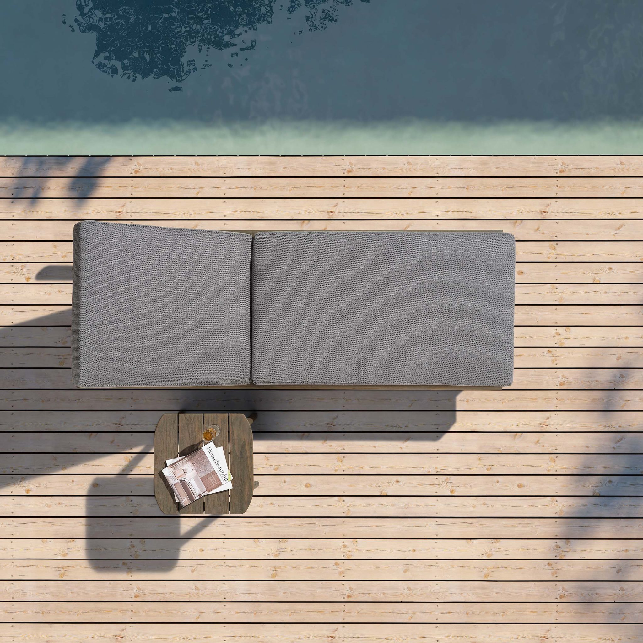 Let your guests relax in ultimate comfort with the Leo Sunlounger. This luxurious sun lounger, designed by Claudio Bellini, combines a stylish wood-effect aluminium frame with a matching aluminium side table. The 4-position adjustable backrest and soft, UV-resistant and stain-repellent cushions ensure maximum comfort and durability. The refined design, featuring woven rope details, creates a calm, natural look inspired by the 1960s.