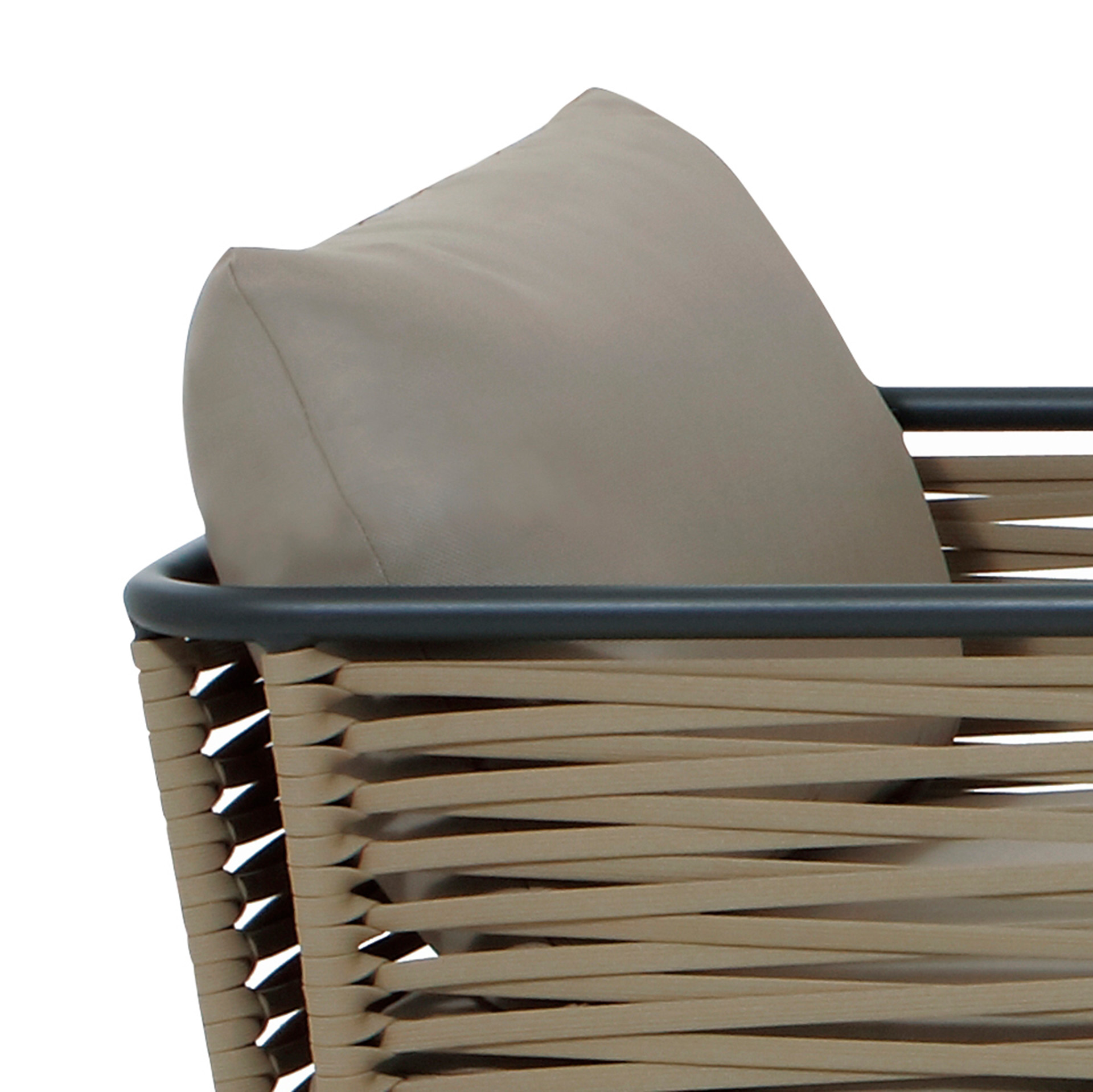 The powder-coated aluminium frame forms the strong foundation of this lounge set. The coating protects against scratches and wear while making the frame extremely easy to maintain. Often, a quick wipe with a damp cloth is enough to restore its fresh appearance.