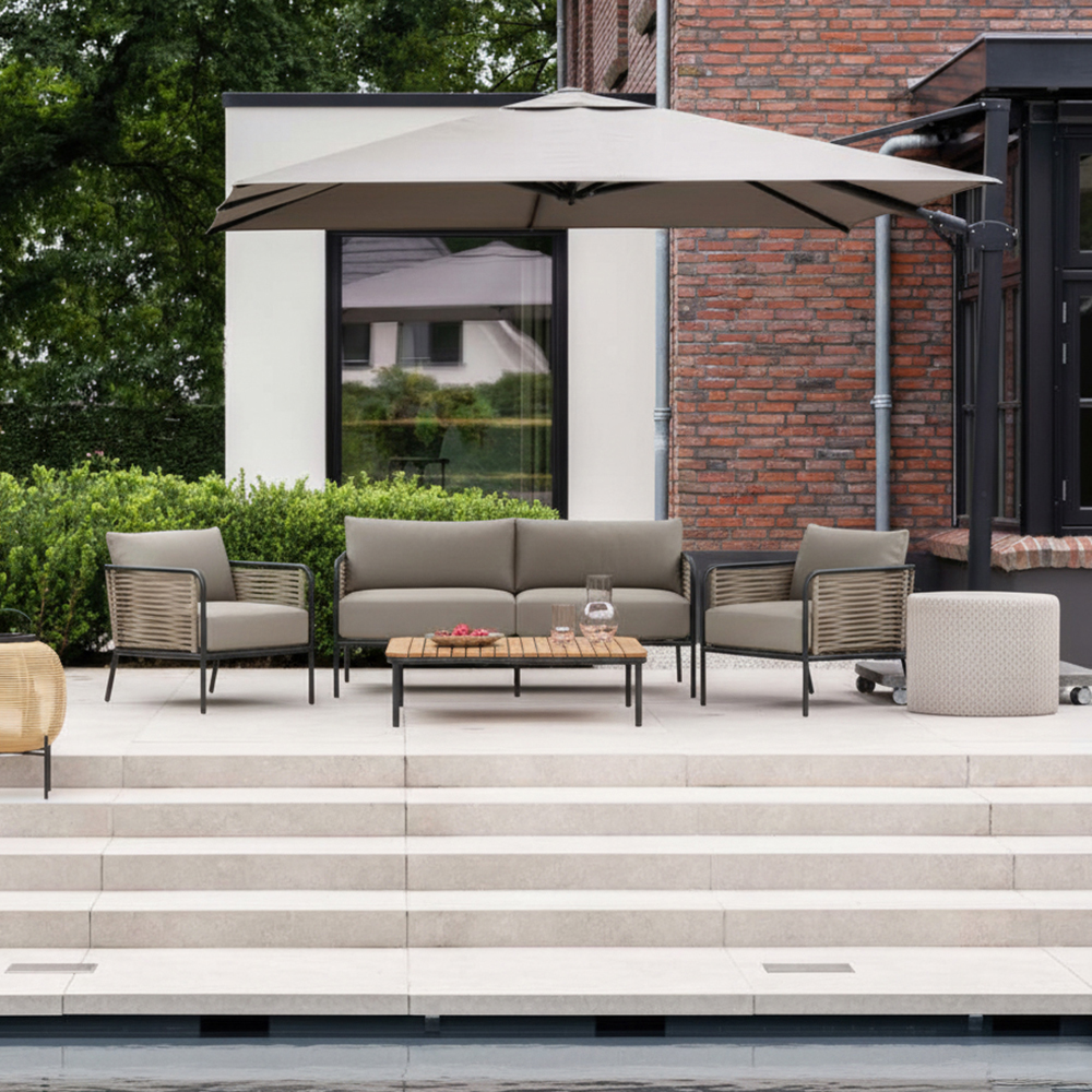 The neutral anthracite and beige colour scheme complements almost any interior or exterior design. Whether you prefer a modern industrial look or a warm, natural atmosphere, this set integrates effortlessly into your concept.