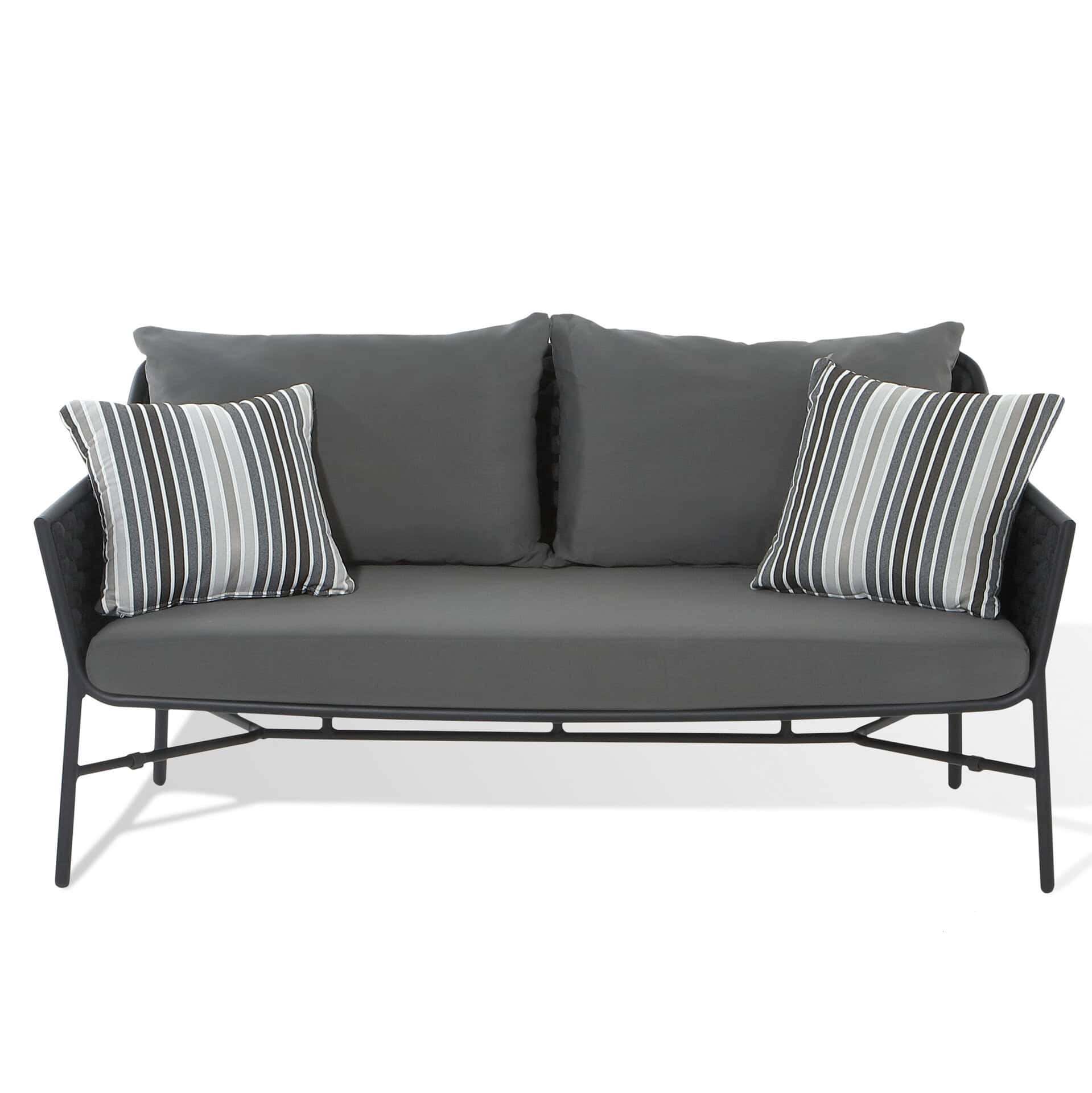 The grey outdoor cushions are made from high-quality materials specifically designed for outdoor use. The woven structure not only adds visual appeal but also provides extra ventilation and comfort for your guests.