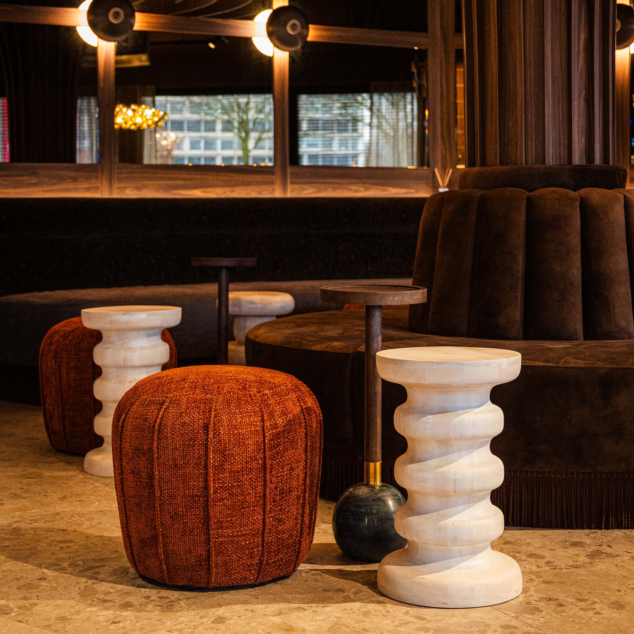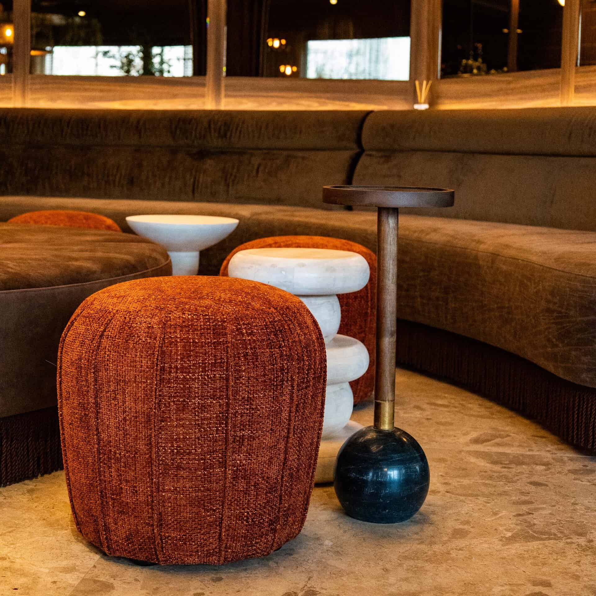 If you are looking for a side table that is a little different from a standard side table, the Osaka is the perfect addition to your hospitality interior. Its unique design is characterised by the spherical marble base and the table top with support in mango wood with a walnut finish. Side table Osaka comes with a black marble and white marble sphere.