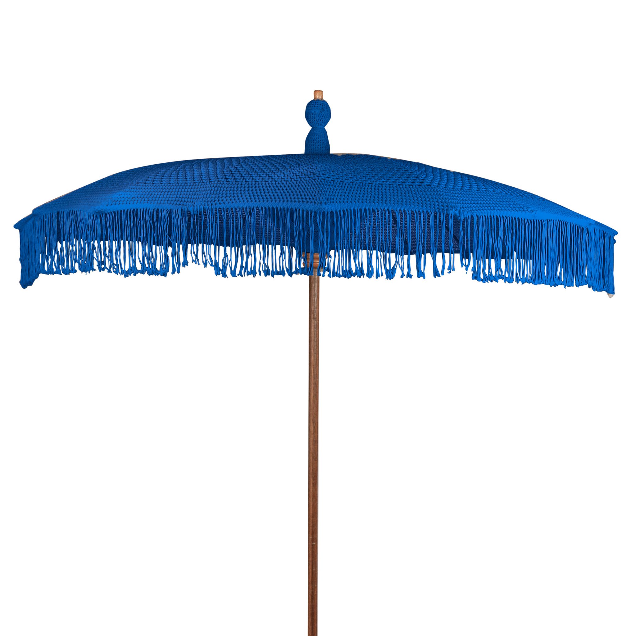Bring an instant warm, bohemian vibe to your garden or terrace with the Bali parasol. The woven fabric provides soft light filtration, allowing you to enjoy shade without it feeling dark. The teakwood frame gives the parasol a natural and luxurious look that fits perfectly into a boho setting.