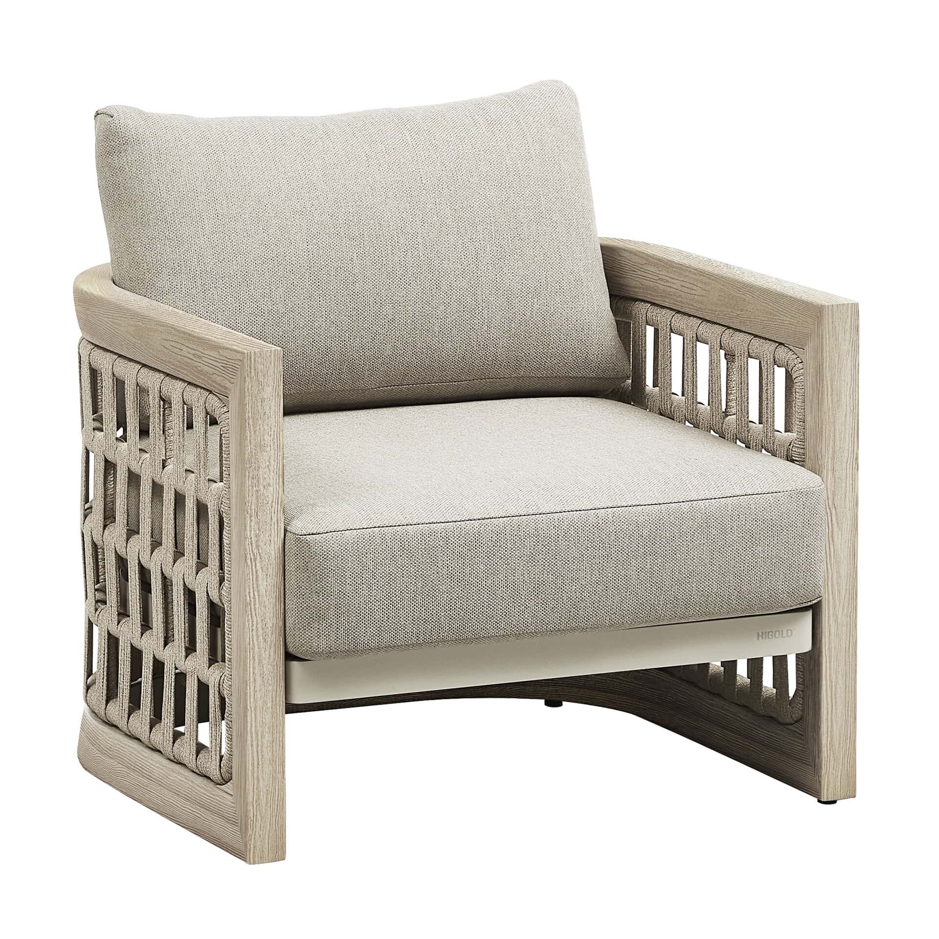 The Riva 3.0 Lounge Set from Higold is a luxurious set consisting of a three-seater lounge sofa, two lounge armchairs, and a coffee table. Higold Excellent Outdoor is known for its use of high-quality materials and unique designs.