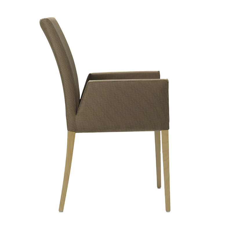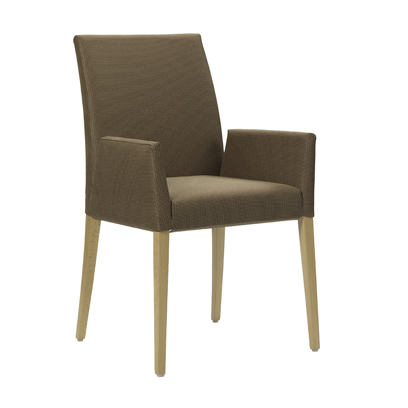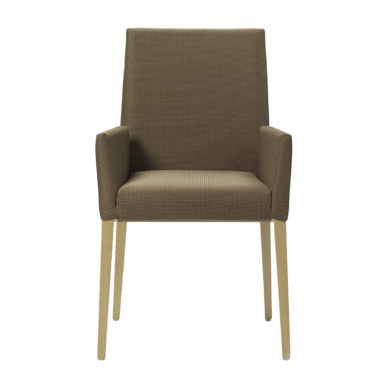 The Sake chair with armrests is specially designed for the healthcare sector. The chair is equipped with Nosag springing, giving high seating comfort. This chair is tailor-made to your specific requirements. Choose the type of wood for the legs (beech, oak or walnut), as well as the upholstery.