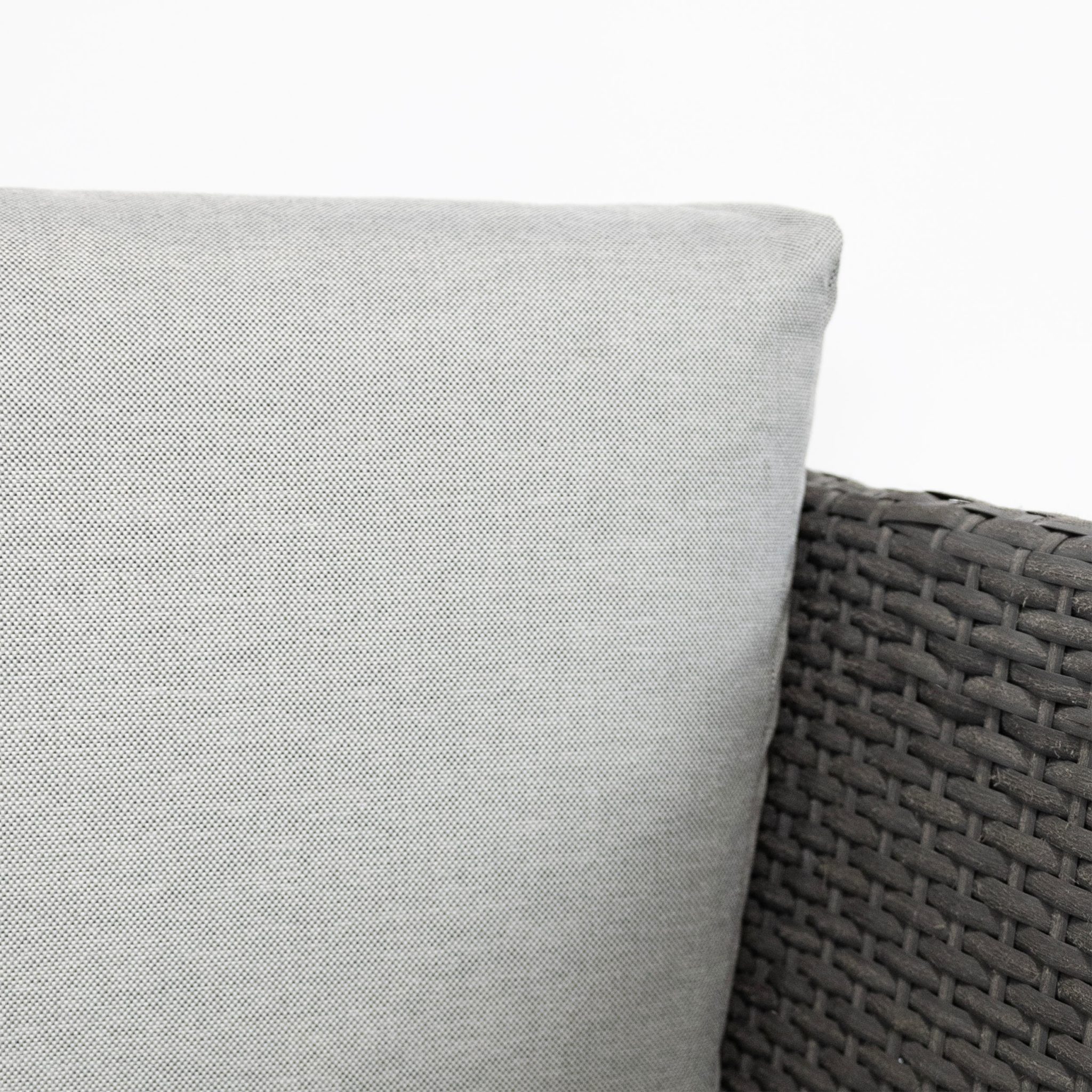 Corner Lounge Set Salera has a steel frame powder-coated in a black hue, combined with the anthracite wicker you have a fine lounge set on your terrace for lovely summer evenings. The coffee table has a steel frame and a glass top. Beautifully rounded shapes and nice thick cushions ensure that you sit comfortably. The cushions are made of UV-resistant polyester, preserving their quality and colour for a long time. This lounge set comes with a free set of Nessa Plant Holders. The set comes disassembled.