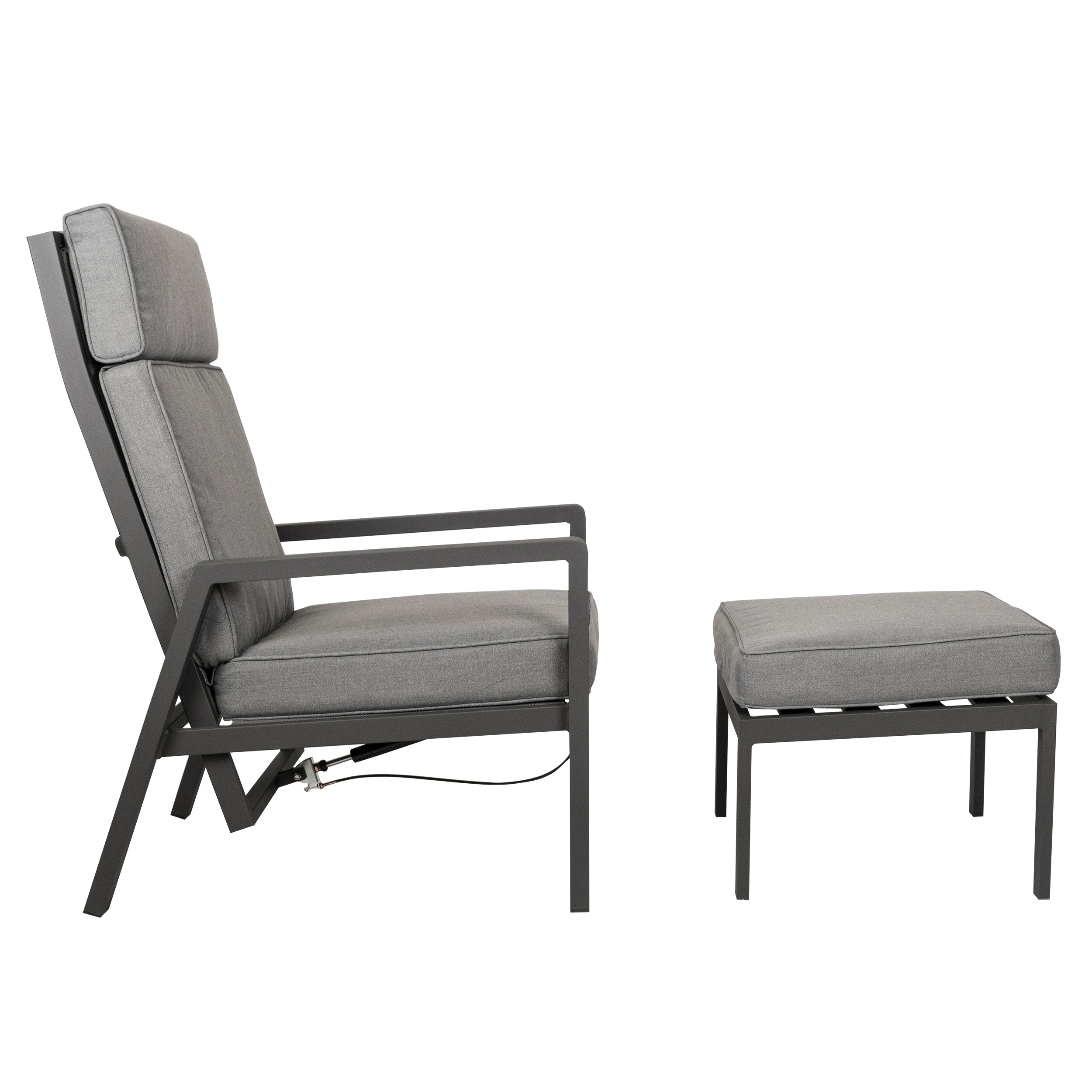 The May Lounge Chair is a two-piece set consisting of a lounge chair and a footstool. The chair is wonderfully comfortable and allows you to relax in the sun. The May Lounge Chair is easy to move, making it suitable for professional outdoor use.