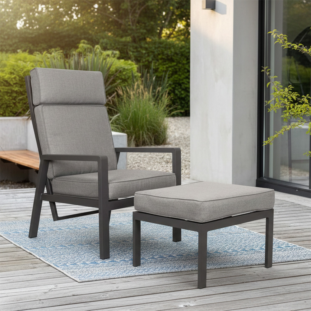 Comfort is central to the design. Each set includes a spacious lounge chair (79 x 56 cm) and a matching footstool (50 x 56 cm). Guests can relax fully, enhancing their experience at your venue.