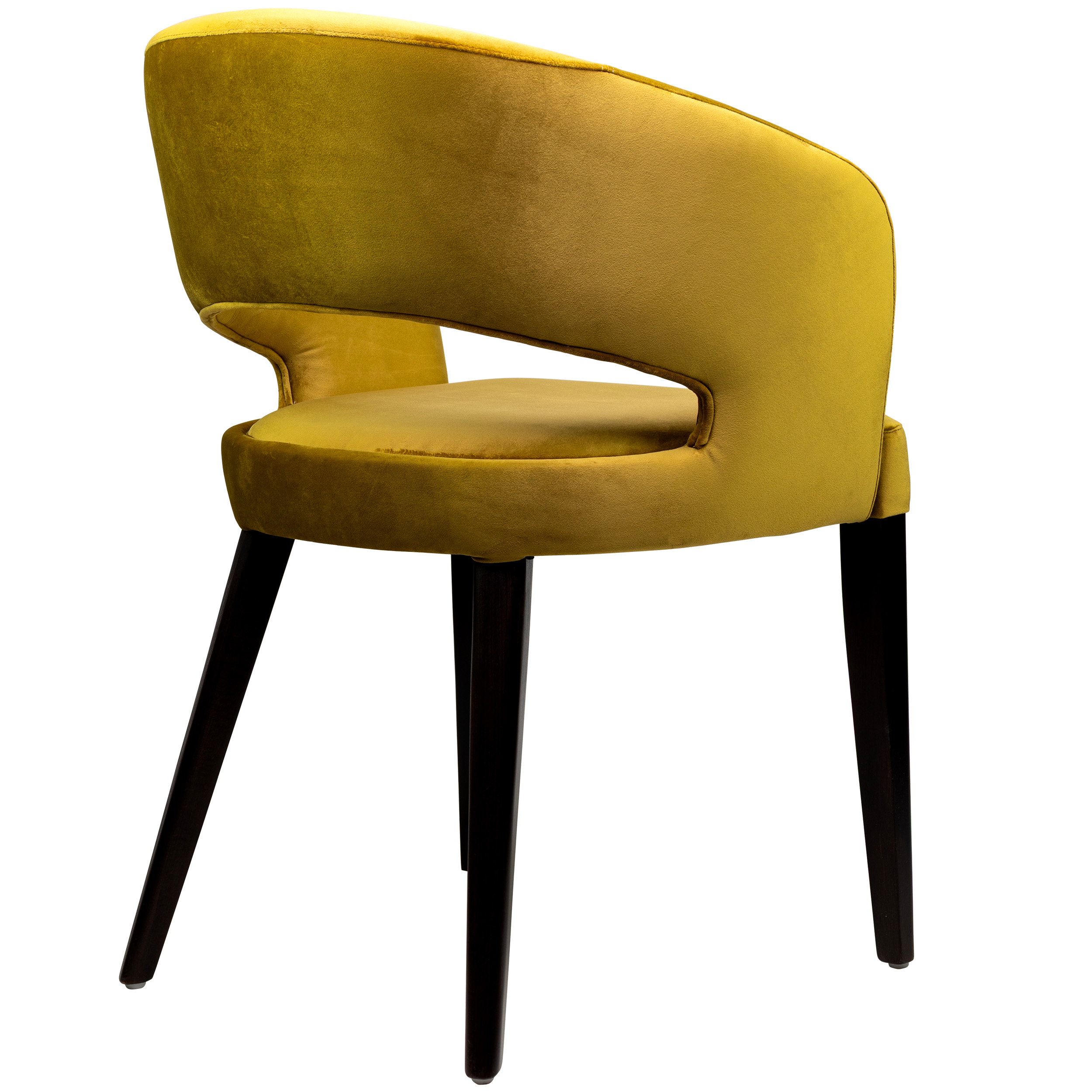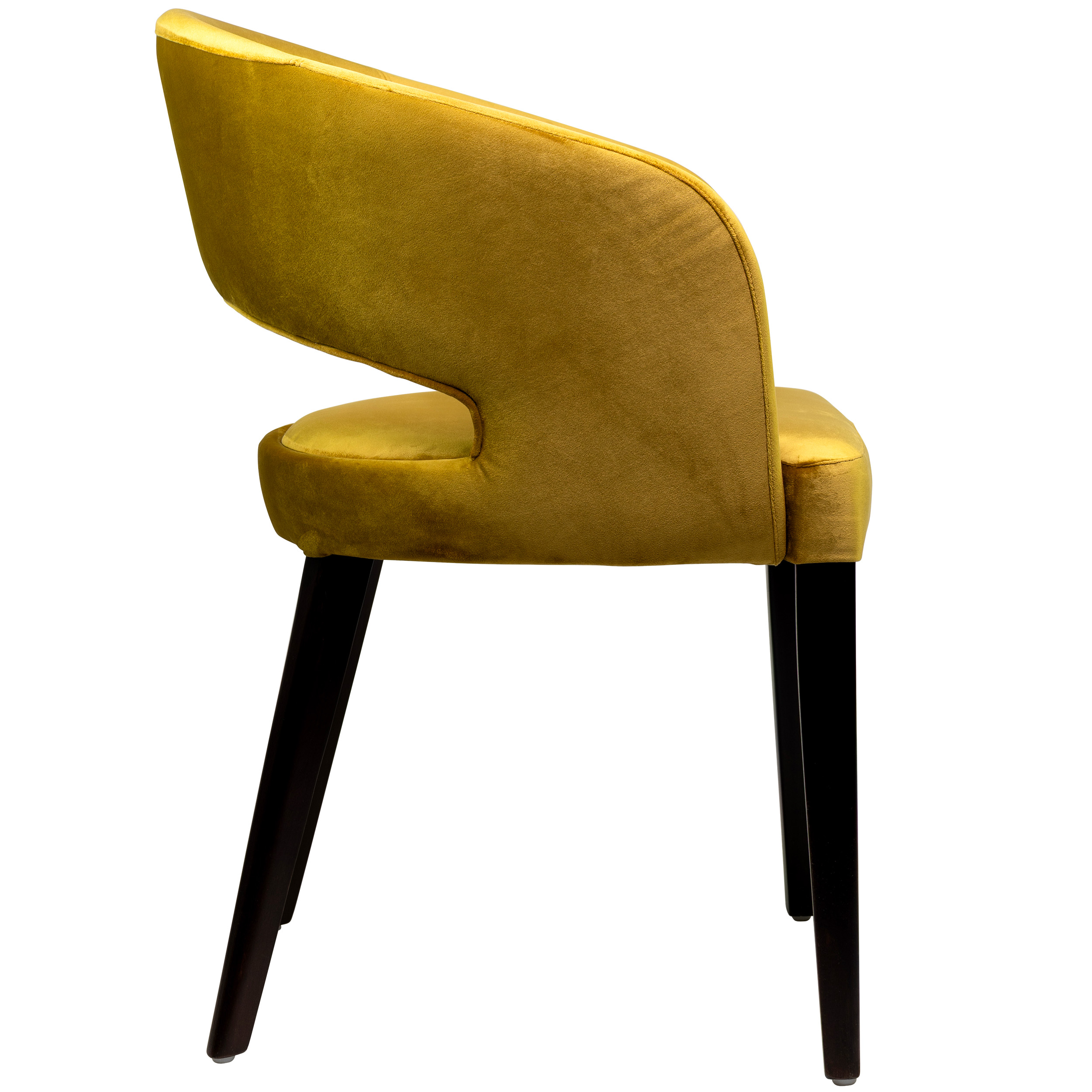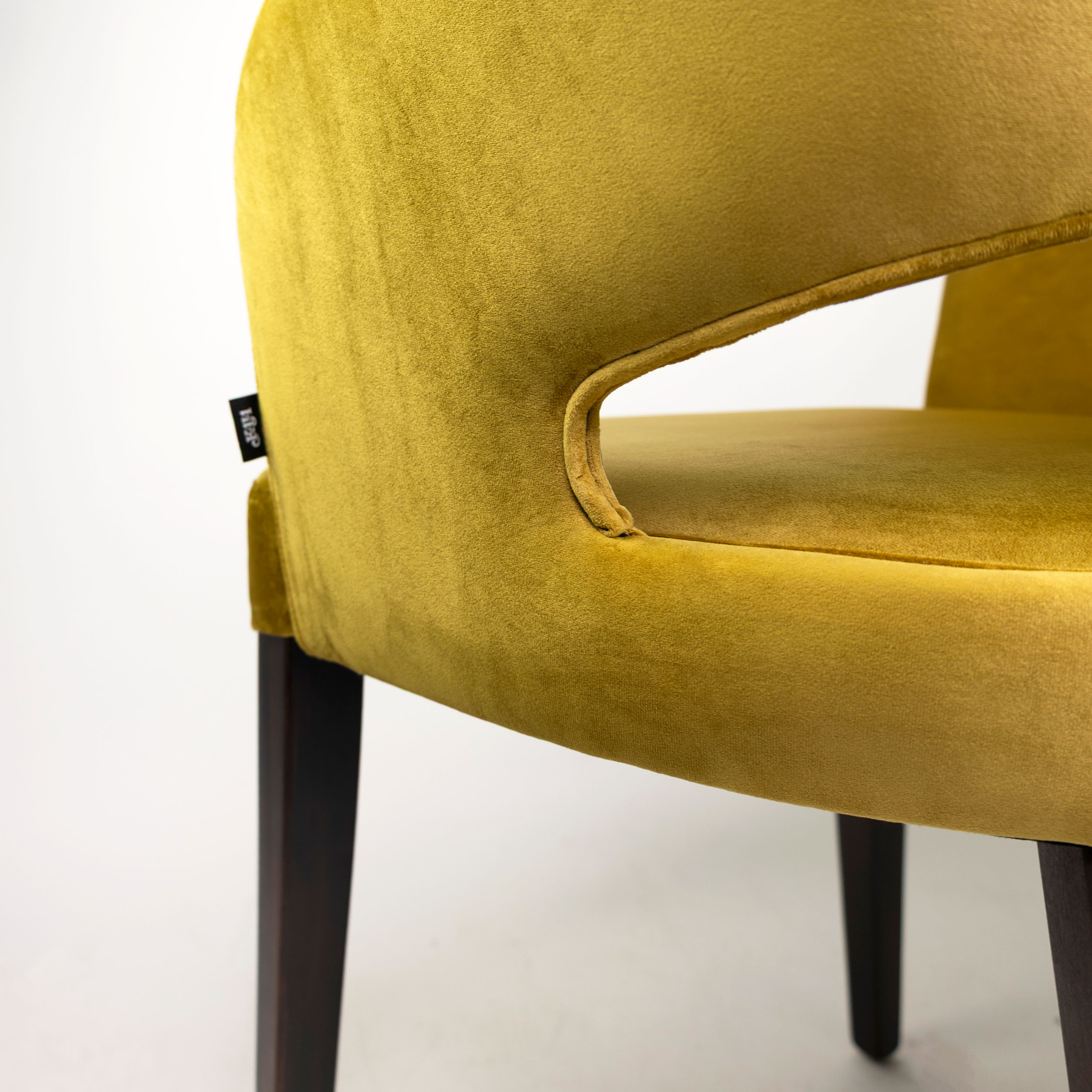 Chair Siara is timeless and elegant. The opening in the back gives the chair an airy effect, and the armrests give this hospitality chair even more comfort. The seat of the chair is executed with webbing, which gives it spring and therefore increases the comfort of the seat.