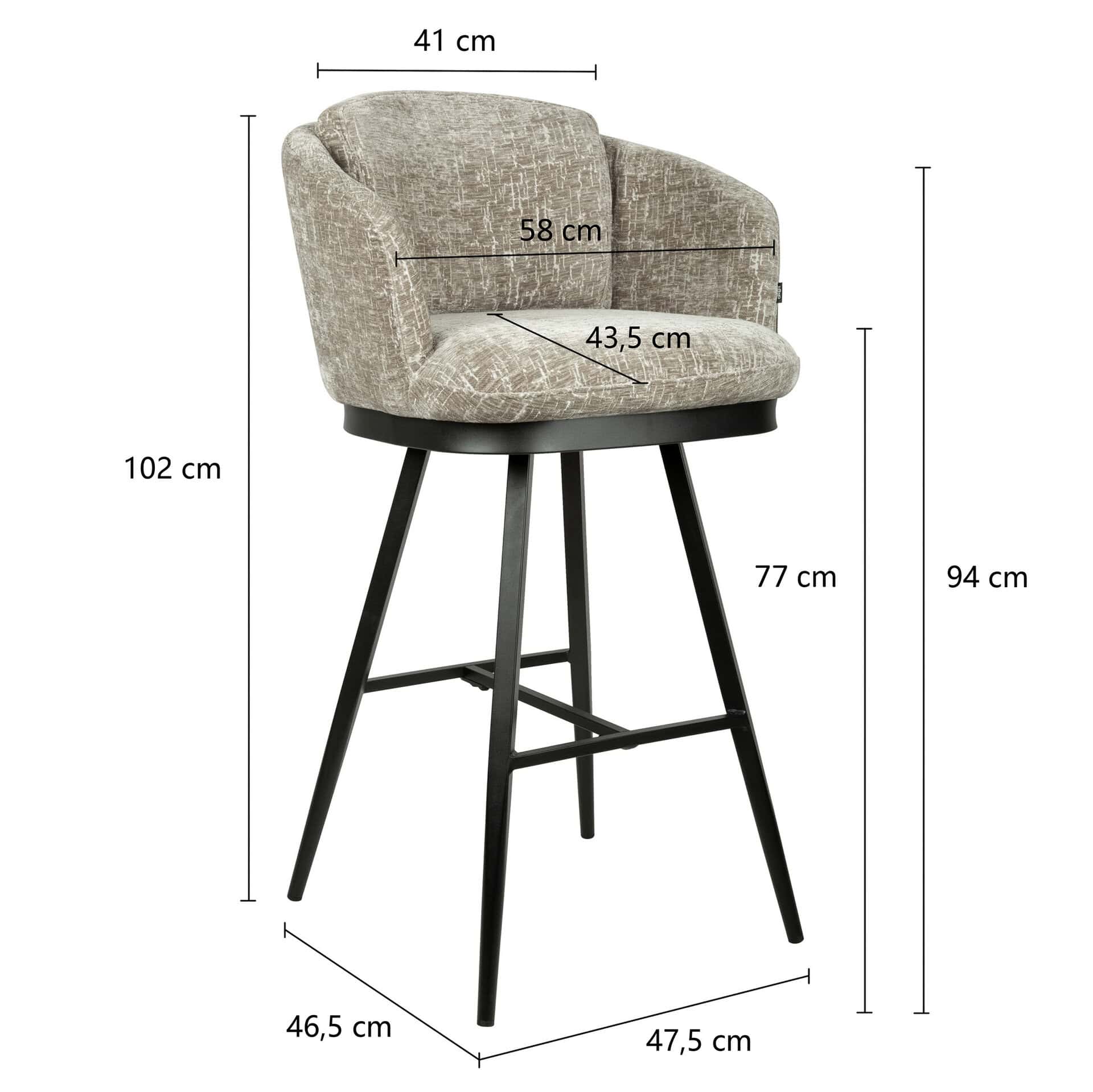 This comfortable barstool can be combined with the entire Sierra collection, including the lounge chair and regular chair, allowing you to easily create a stylish and cohesive interior. The black metal frame gives the chair a modern and sturdy appearance, while the armrests and the beautiful neutral upholstery provide extra comfort and a timeless look. The stock model is available in the colors Army and Shitake, but this model can also be fully customized to your own preferences.