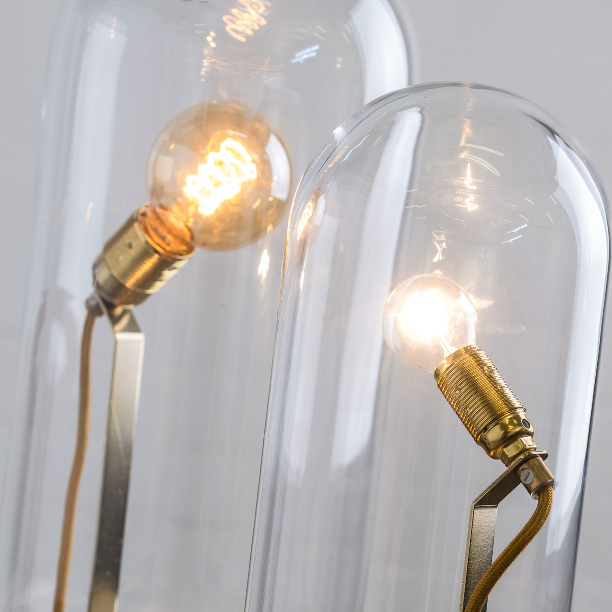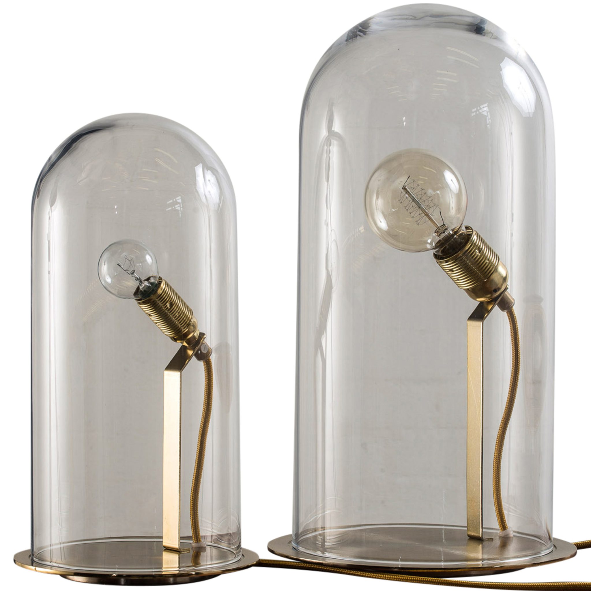 Table lamp Speak Up! is available with a silver or brass base, with glass domes in colors from smokey gray to olive and golden smoke. The table lamp is available with a diameter of 15.5 or 20 cm.