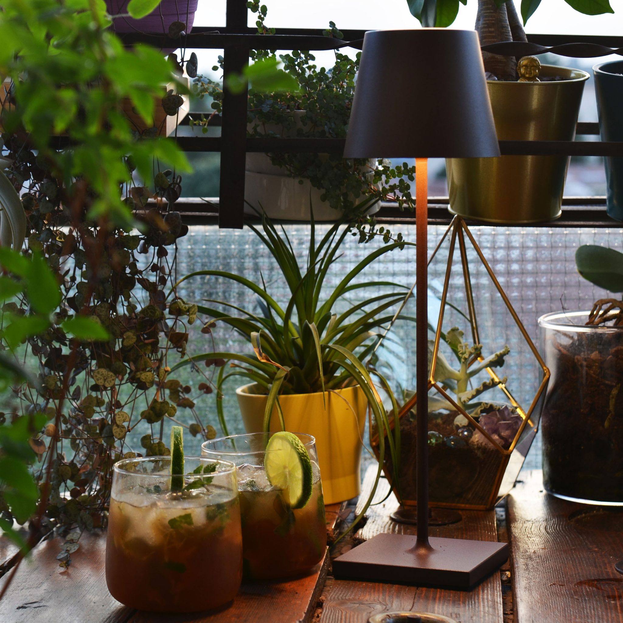 The Poldina lamp is for indoor and outdoor use and is available the colors: anthracite, white, corten and gold.