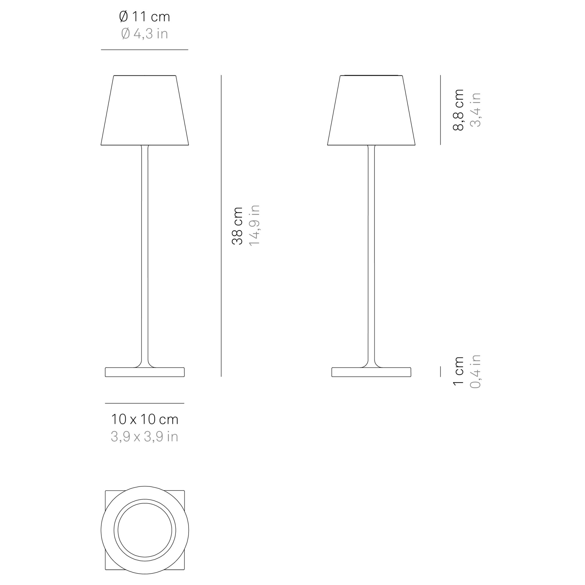 Poldina table lamp is a portable and rechargeable table lamp that runs on batteries. The lamp is available with a contact charging base and dimmer kindling control.