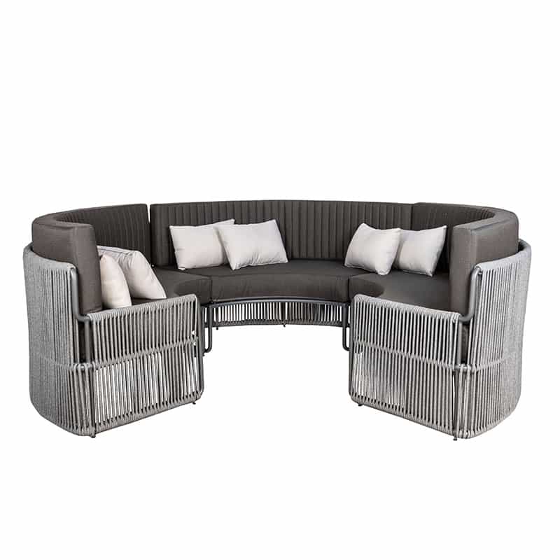 The Roma Large Lounge Bench consists of three bench elements that together form a cosy semi-circular seat. These elements feature a sturdy powder-coated aluminium frame. Thanks to the powder coating, the frame is scratch-resistant and low-maintenance! The Roma Lounge sofa comes with thick cushions covered with black Olefin upholstery. This fabric feels wonderfully comfortable, is UV-resistant and dirt-resistant. Perfect for professional use, therefore!