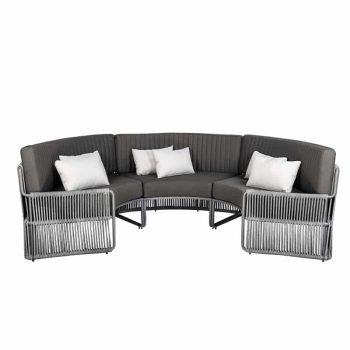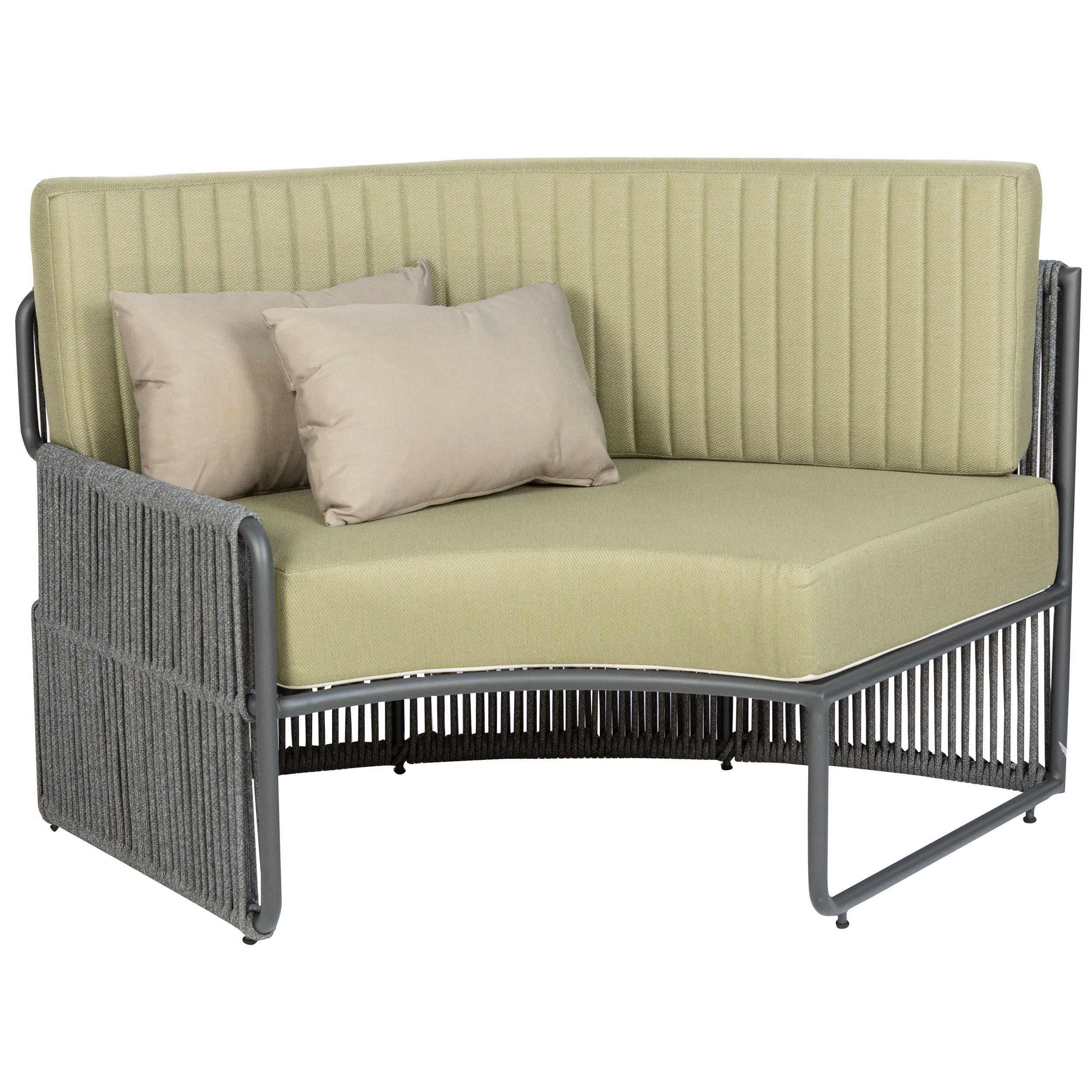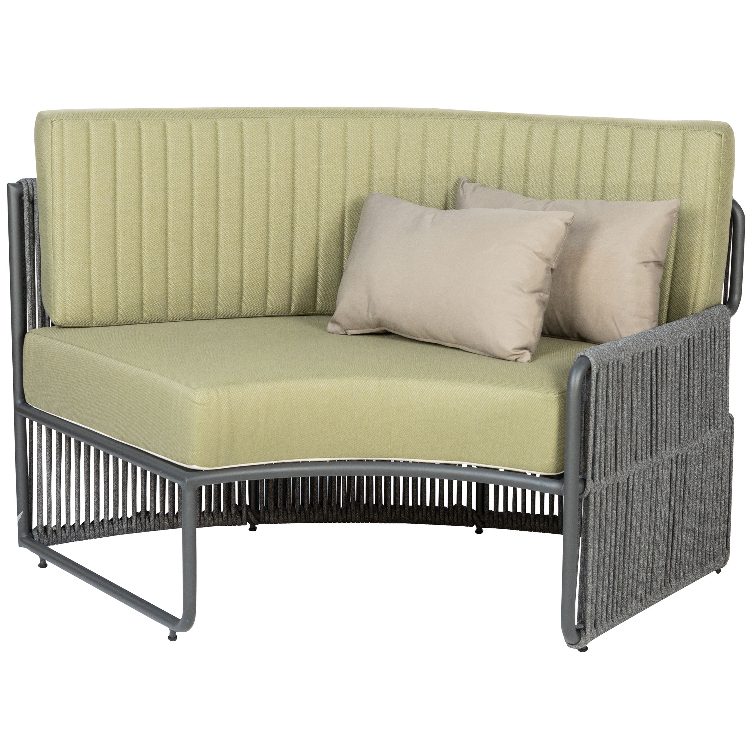 The Roma Lounge Sofa Small from Higold is a stylish semi-circular piece of furniture that is perfect for professional outdoor use! Higold Excellent Outdoor is known for the use of high-quality materials and unique designs. The Roma Collection is characterized by its round shapes. The cushions are covered with green Olefin. This gives the sofa a calm and luxurious appearance. The three sofa elements together form a cozy semi-circular seat where you can lounge or dine comfortably for hours.