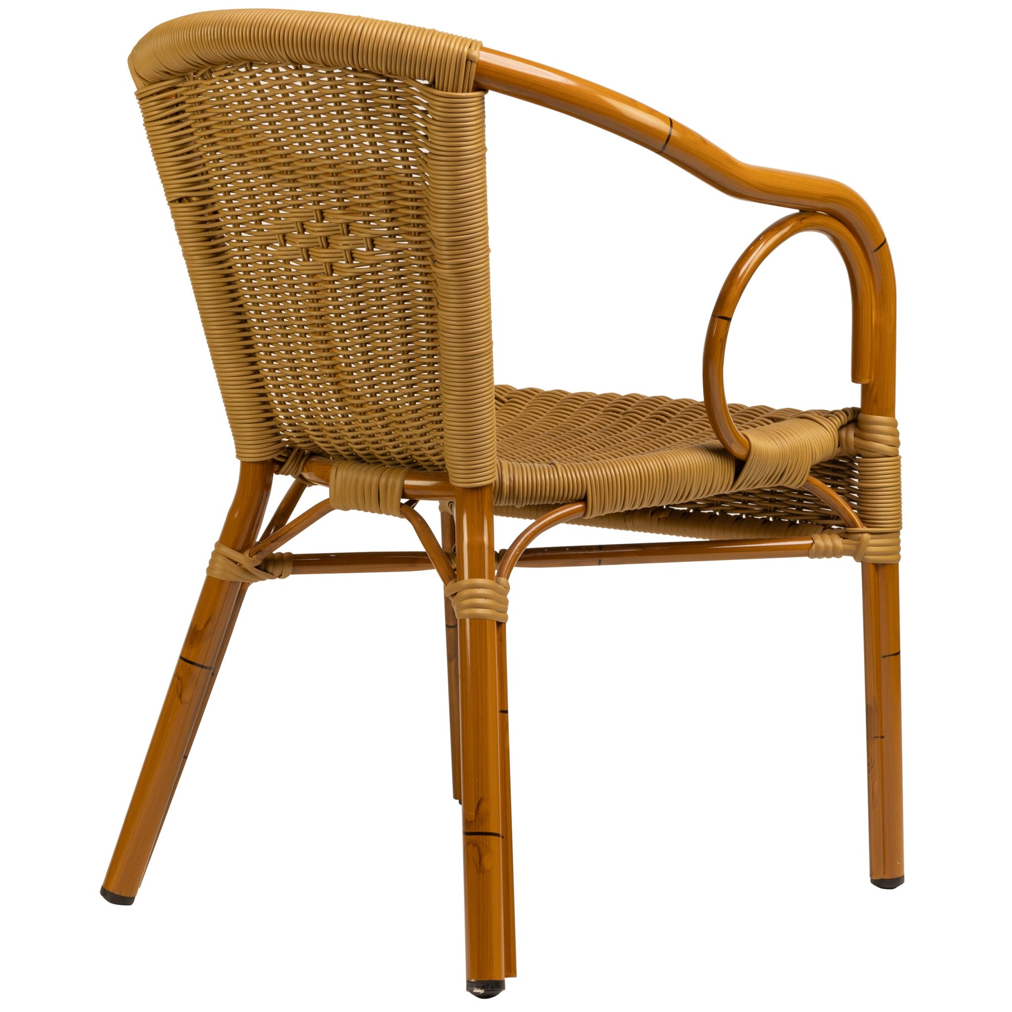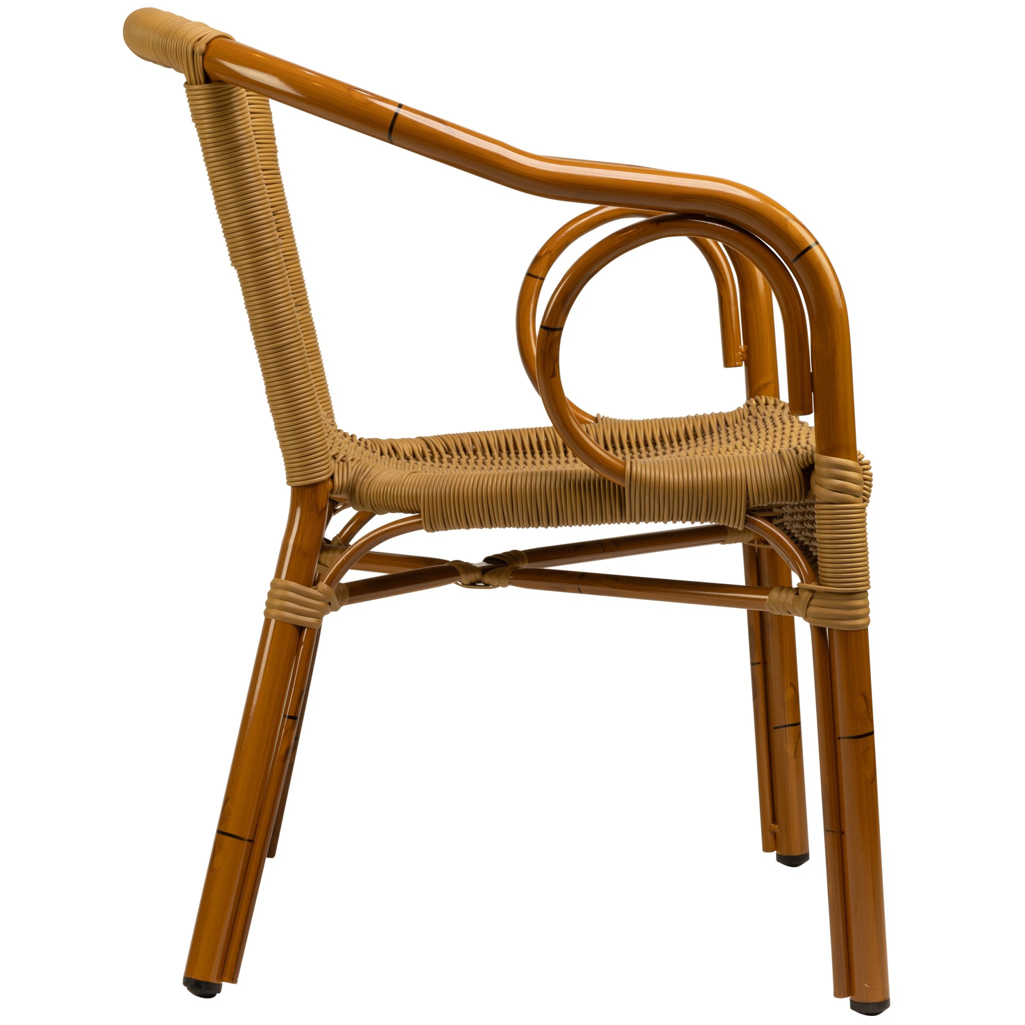 The Costa chair features a supportive backrest and comfortable armrests. This makes long sitting periods pleasant, which is especially important in hospitality where guests like to relax and enjoy their meal or drink. The round weave provides slight flexibility without compromising stability.