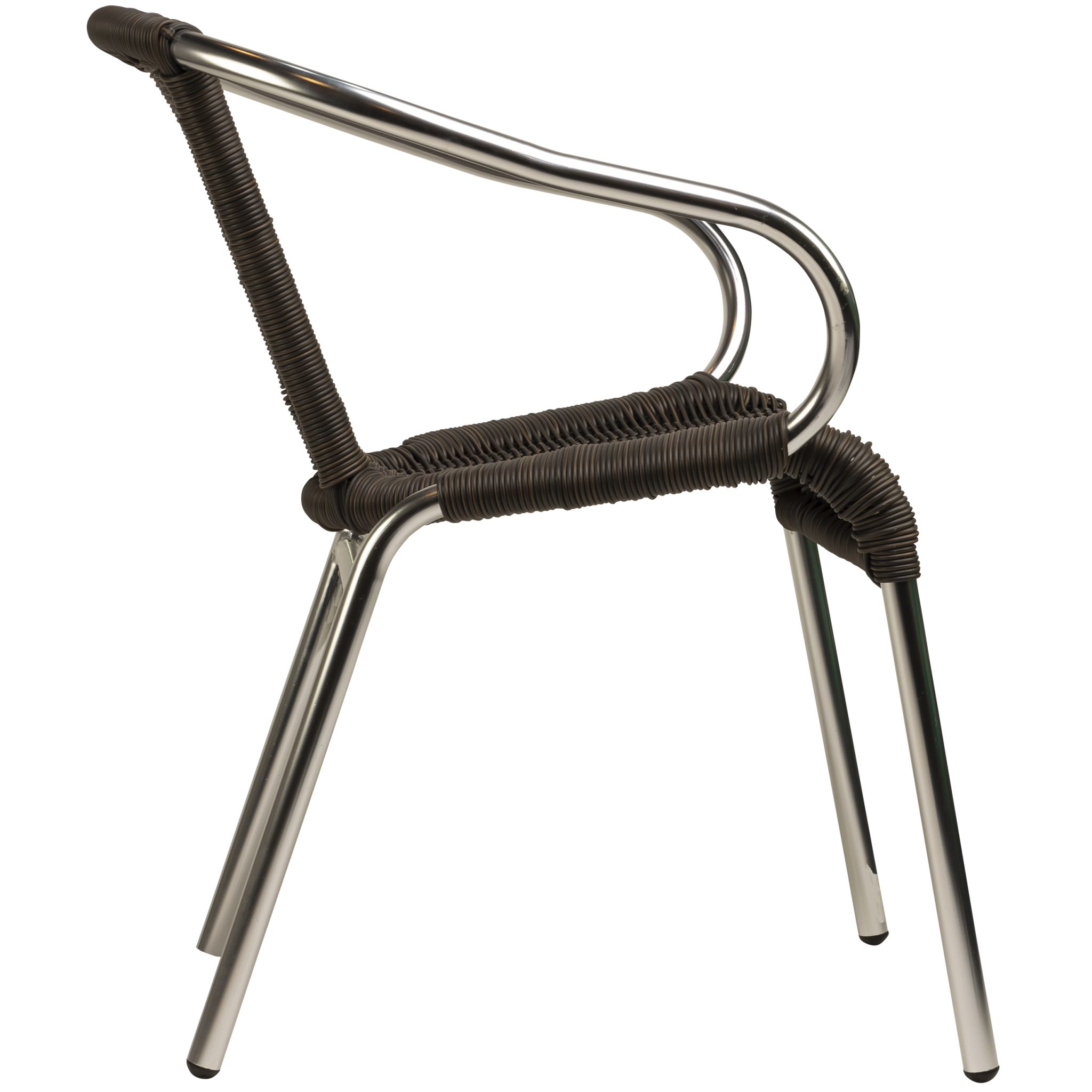 The Kannet terrace chair has been specially developed for professional hospitality environments. The silver aluminium frame provides a robust base that can withstand intensive daily use. The coffee mix wicker weave adds warmth to your terrace or venue, while also being extremely hard-wearing. With dimensions of 58 cm wide, 58.5 cm deep and 76 cm high, this chair offers excellent seating comfort for all your guests.