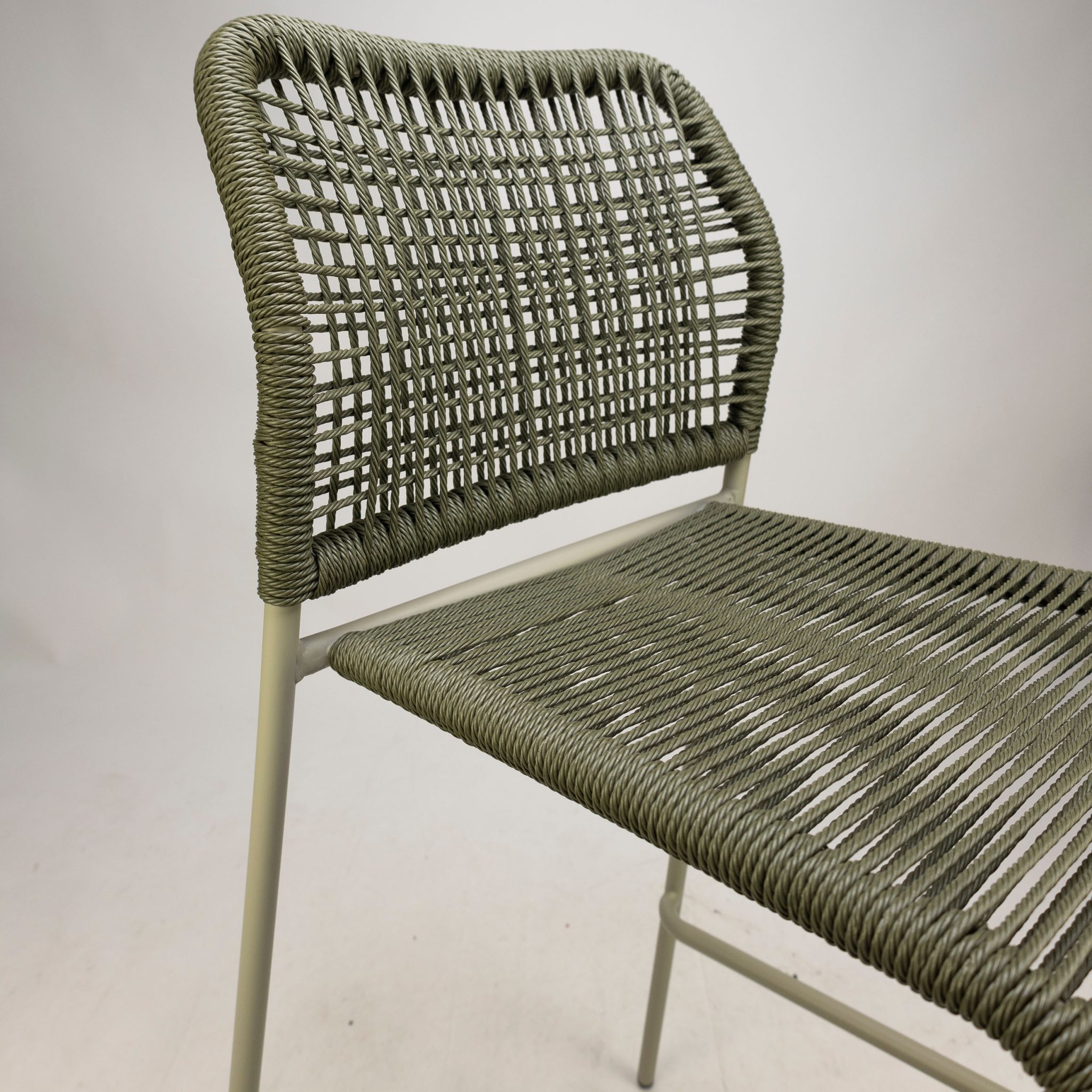 The terrace barstool Twist combines style and comfort, perfect for any hospitality terrace. With a sleek, modern design, this bar stool is available in the trendy colours green, white/natural and orange. The rope wicker is weatherproof and the bar stools are also easily stackable, ideal for use in the hospitality industry. Besides the terrace barstool, the Twist is also available as an armchair and a bench, allowing you to decorate your outdoor space in one style.