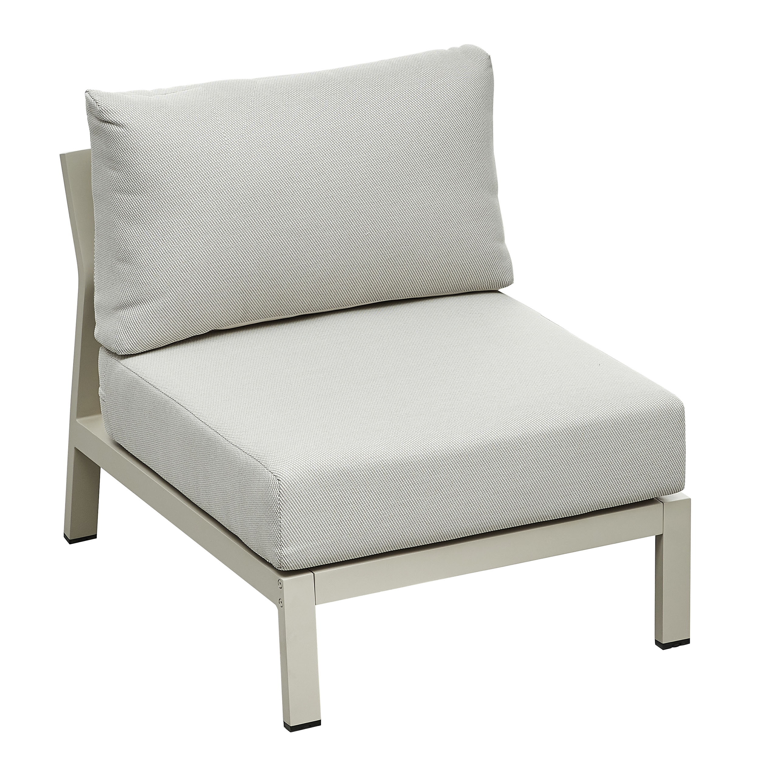 This corner lounge set consists of a left, right, centre and corner sofa element, a side table and a coffee table. The items in this set have a sturdy aluminium frame that has been treated with a taupe powder coating. This makes the frame highly scratch-resistant and easy to maintain. The cushions are made of Olefin. This is a strong material that is dirt-repellent and UV-resistant. Teak elements are attached to the armrests of the lounge sofa. The Visconti Corner Lounge is therefore a perfect combination of design and comfort!