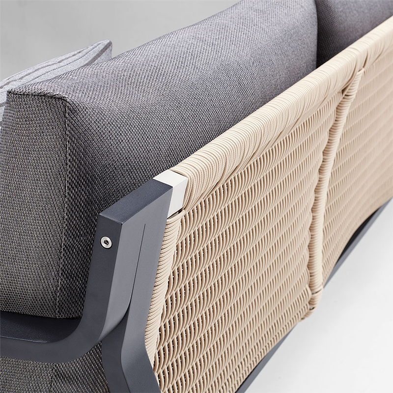 Olefin is a very strong material and is known for its comfort. Dirt and UV radiation have no effect on its quality and the cushions are hardwearing and feel wonderfully soft. The backrest is made of a strong PE rattan weave.