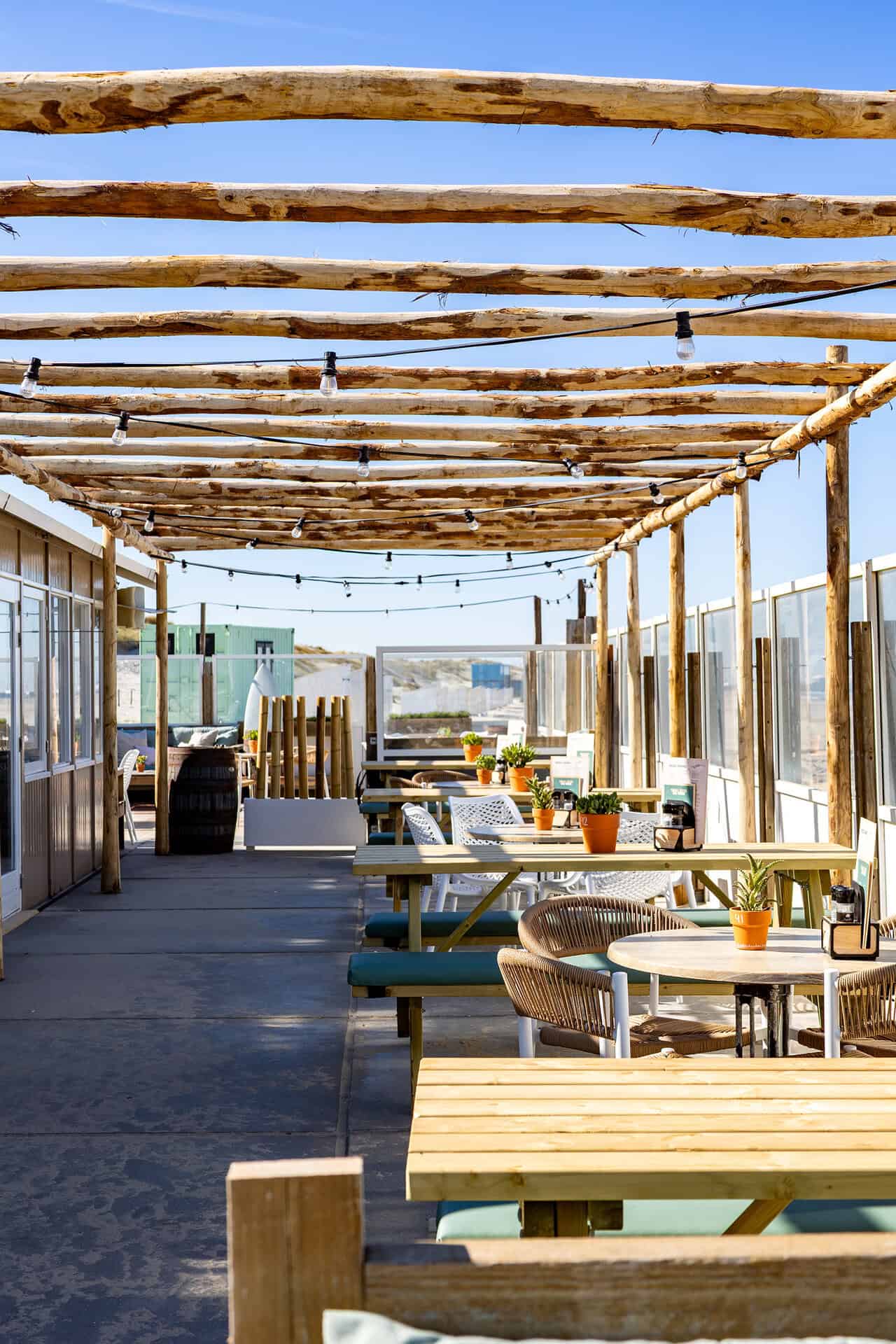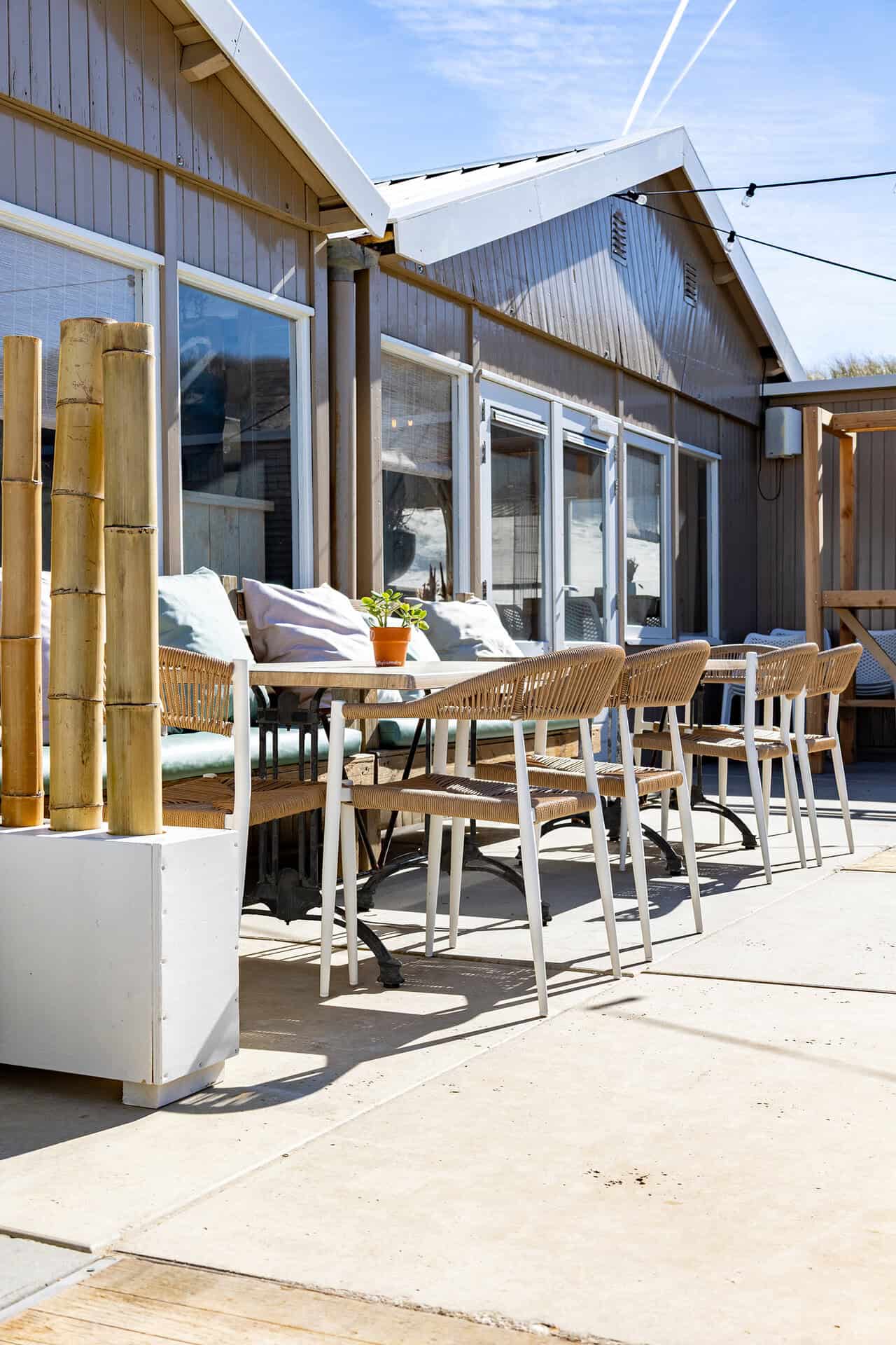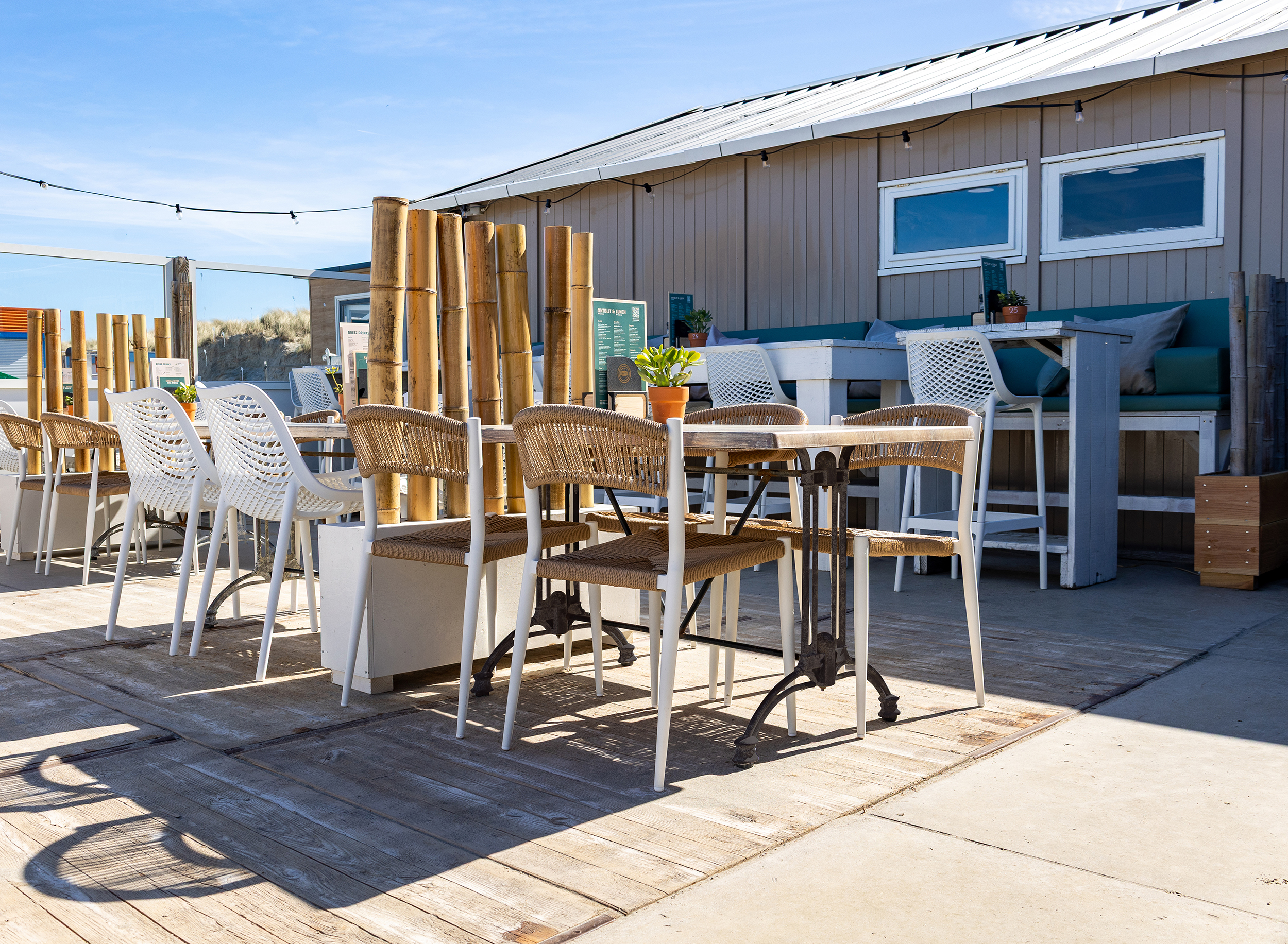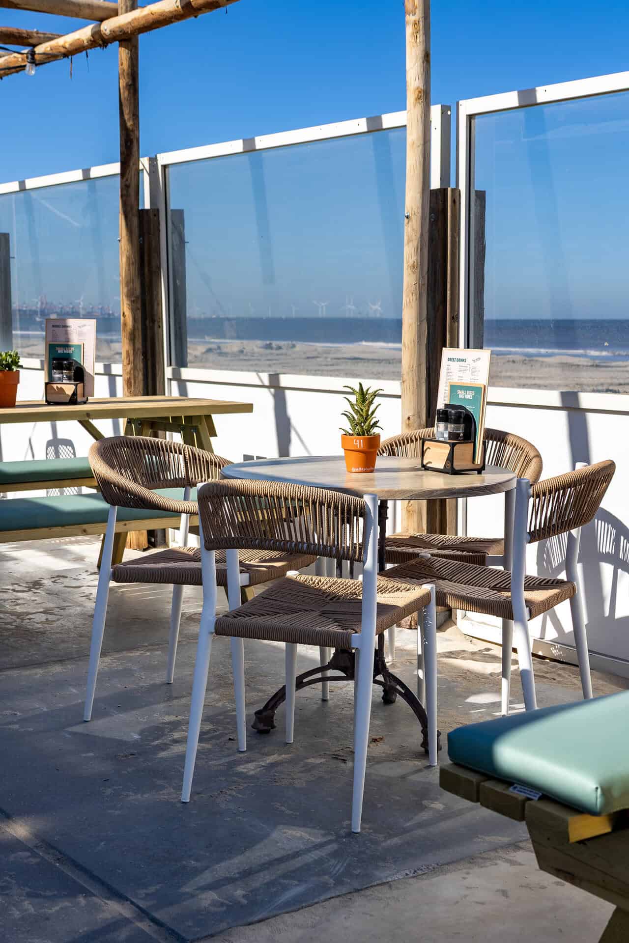 At Beachclub Breez, you can enjoy exceptional comfort on the Jonah terrace chair with armrests in white/natural, as well as on the same terrace chair without armrests. This creates a cohesive look, while still allowing your guests to choose which type of chair they prefer to sit in.